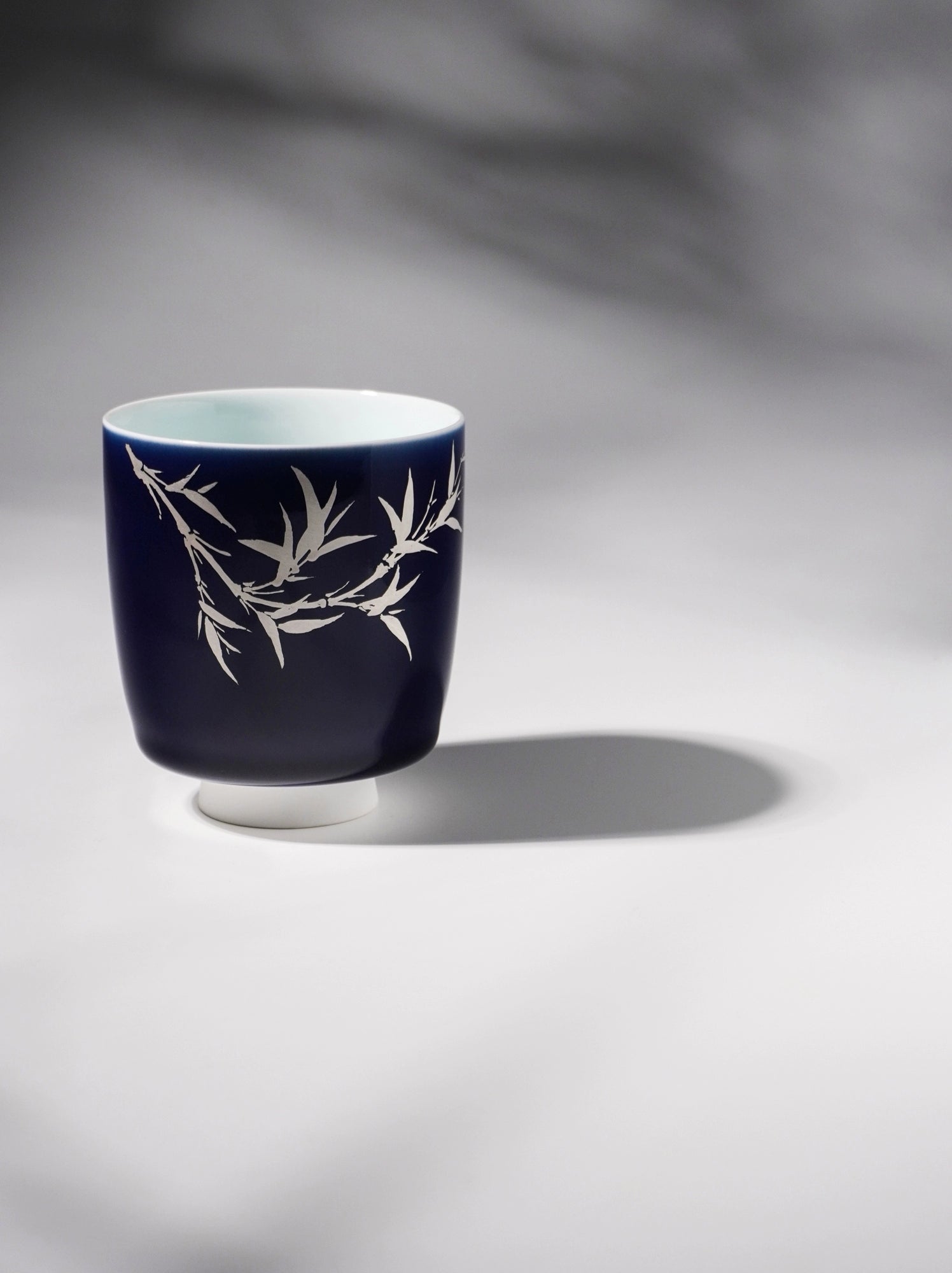 handmade raw ore glaze hand-painted Ji blue sterling silver Fengzhu coffee cup 200ml Chinese tea cup 100ml