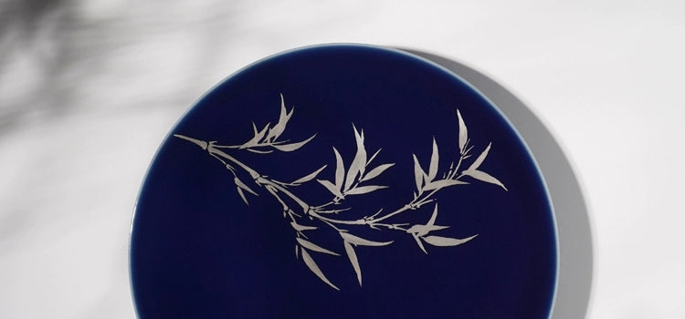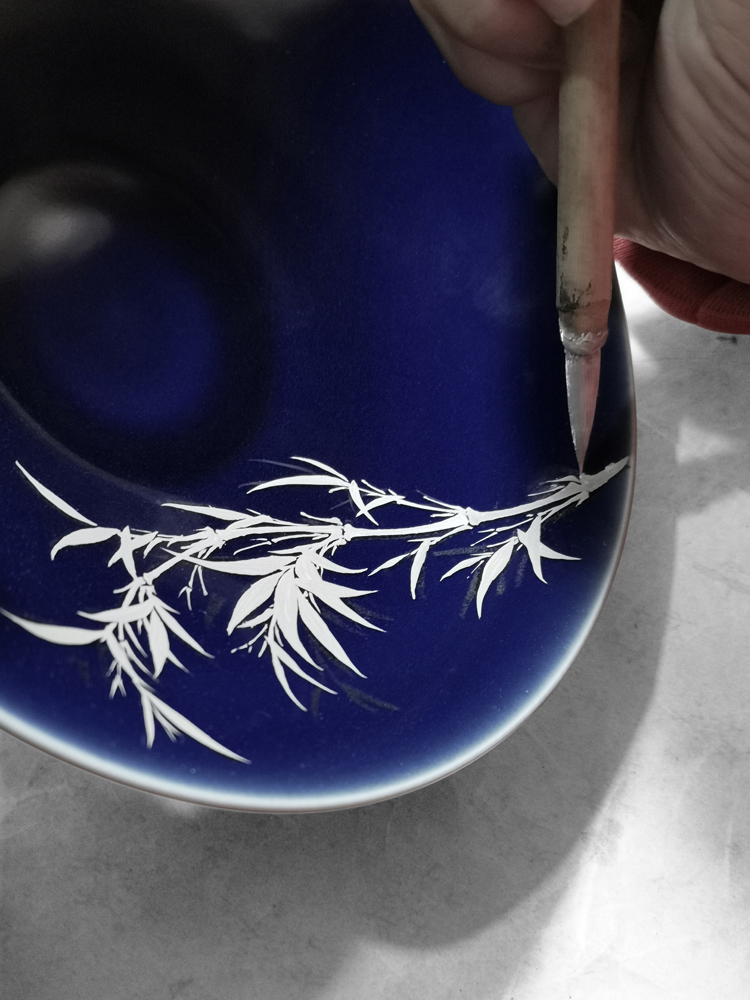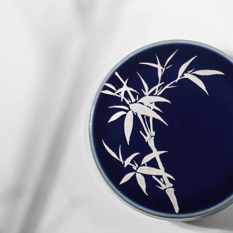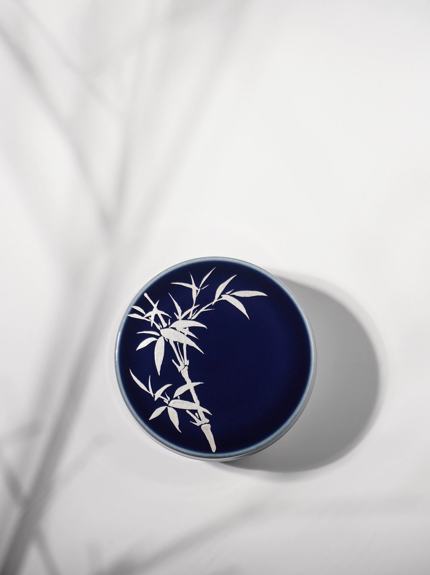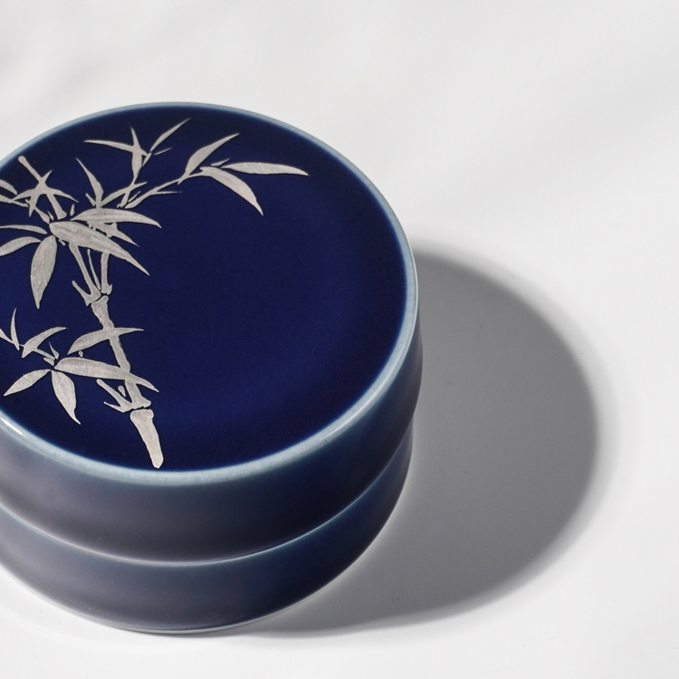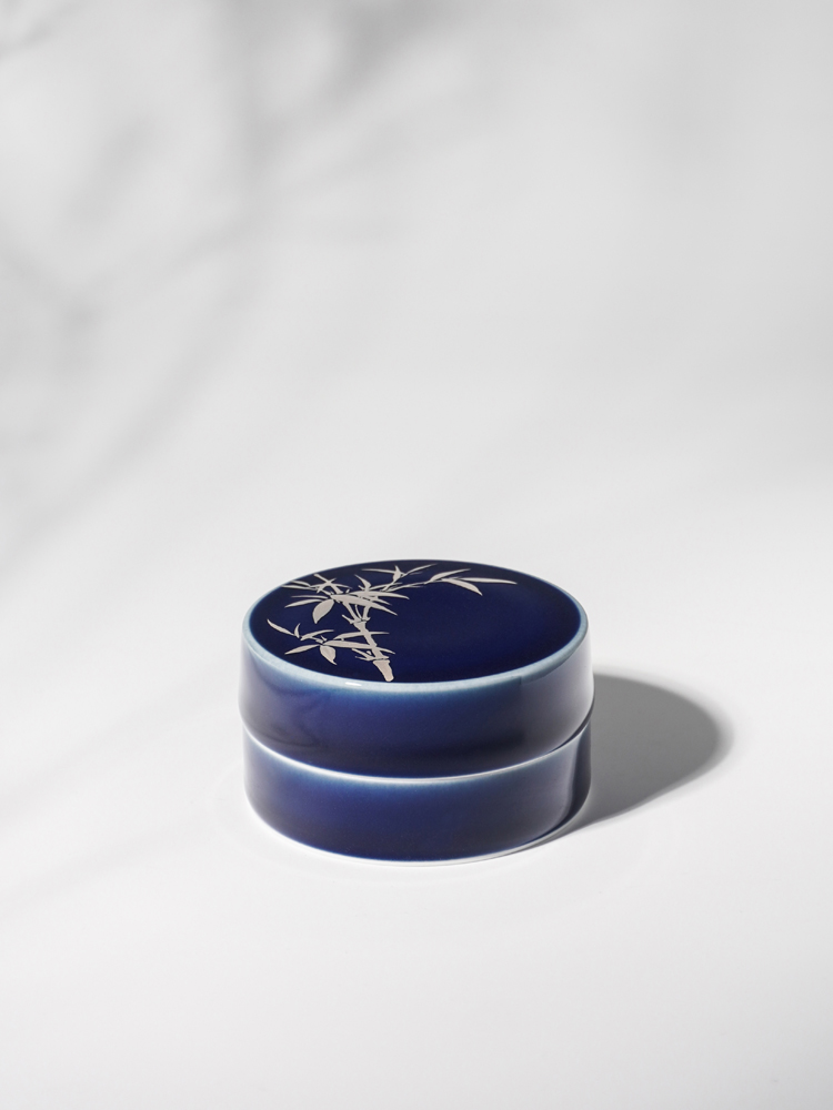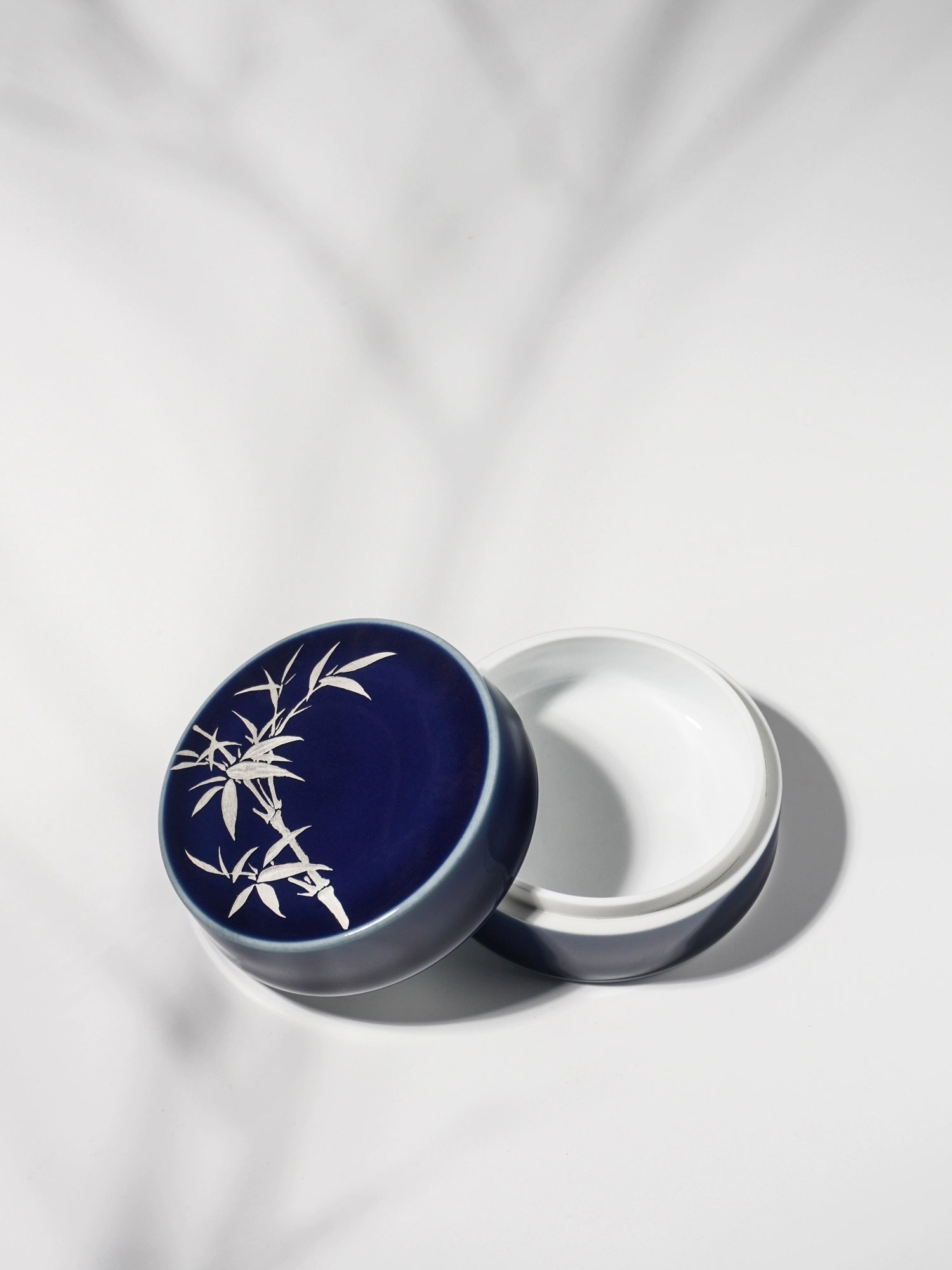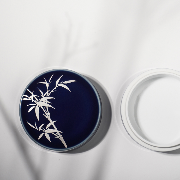 • handmade small porcelain box Chinese study ornament exquisite hand-painted Ji blue sterling silver wind bamboo porcelain box printing powder box