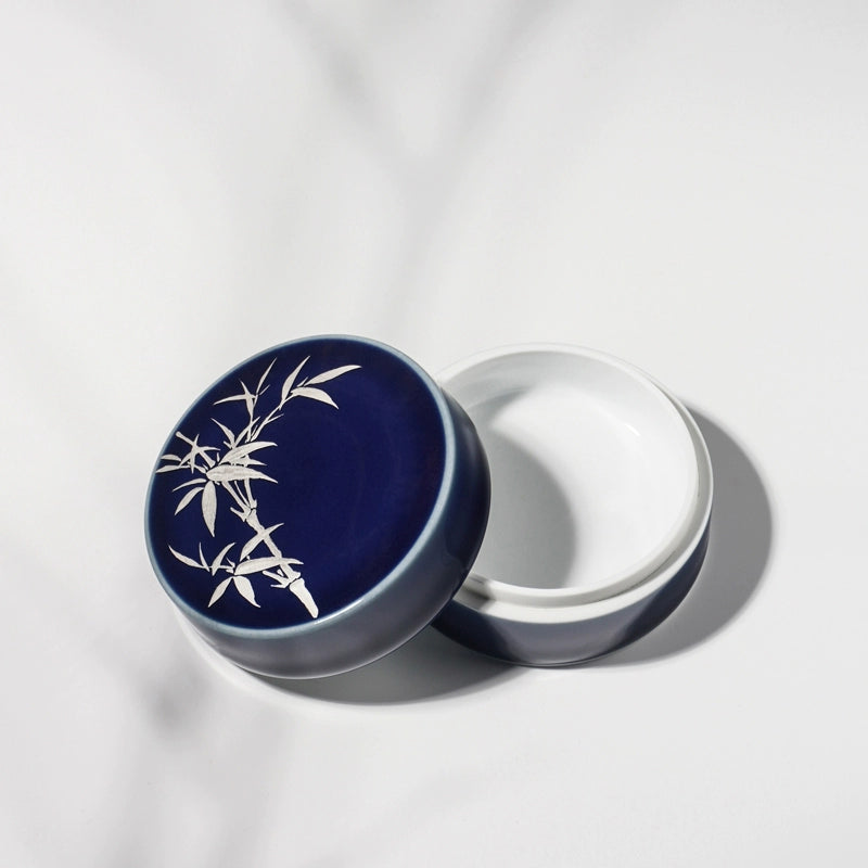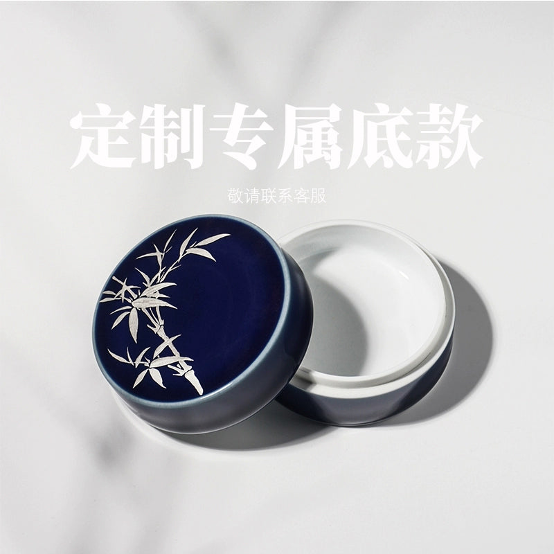handmade small porcelain box Chinese study ornament exquisite hand-painted Ji blue sterling silver wind bamboo porcelain box printing powder box