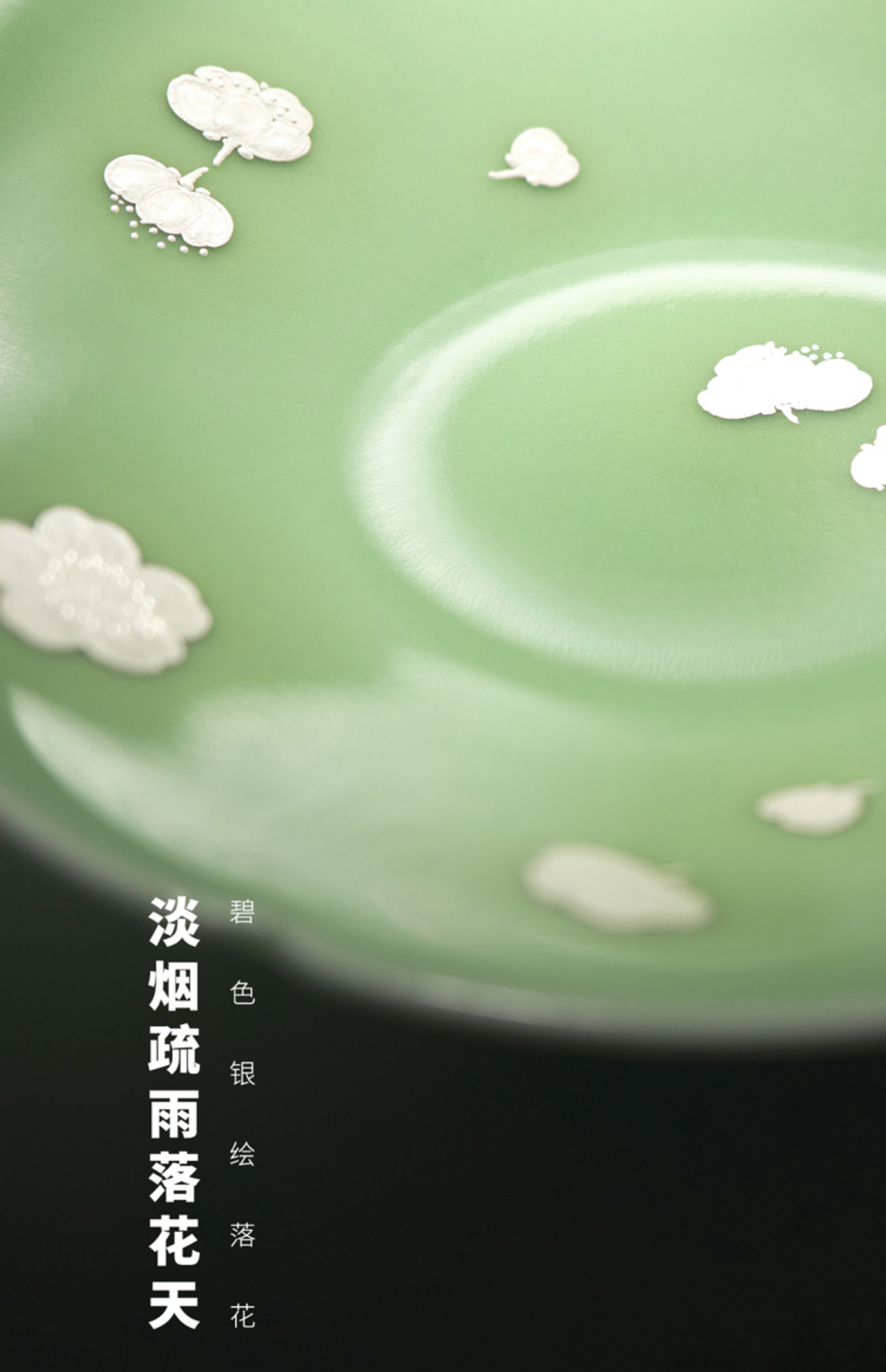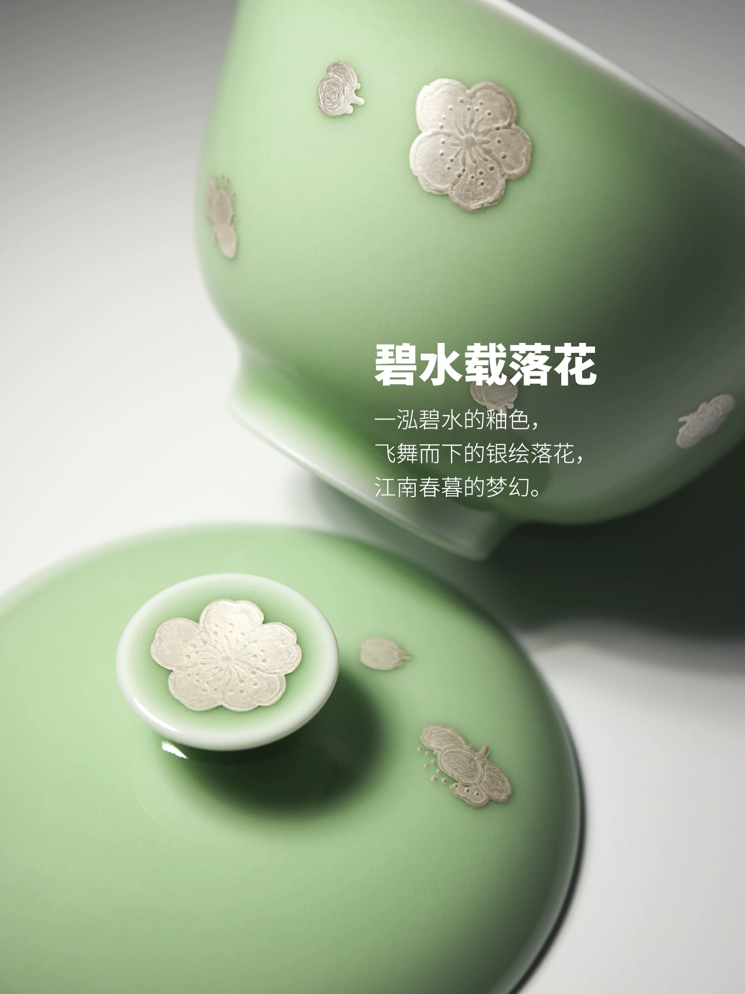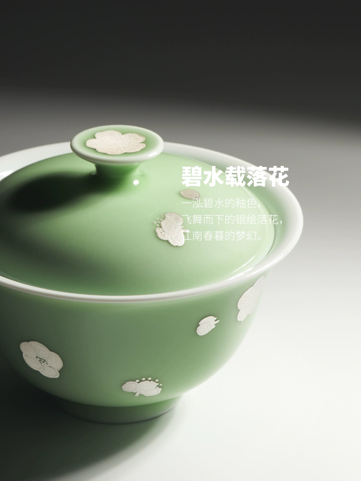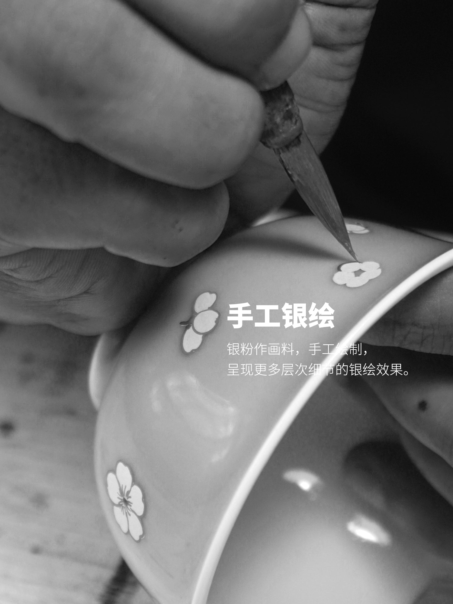 • All-handmade high temperature raw ore blue glaze hand-painted blue sterling silver falling flower Ercai cover bowl 120ml