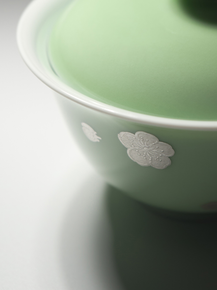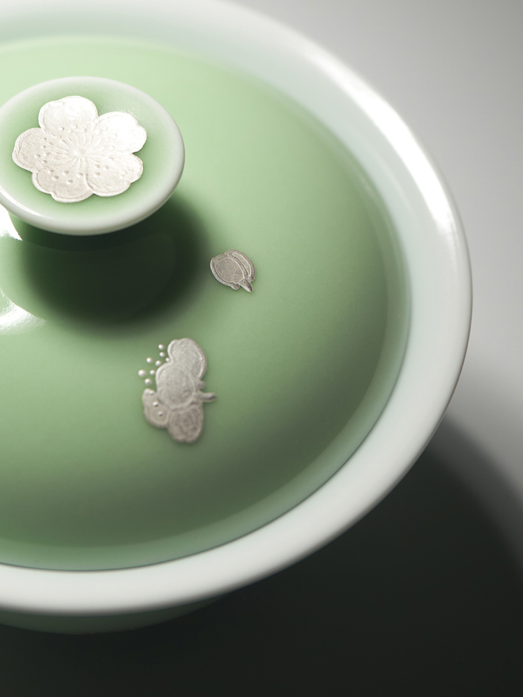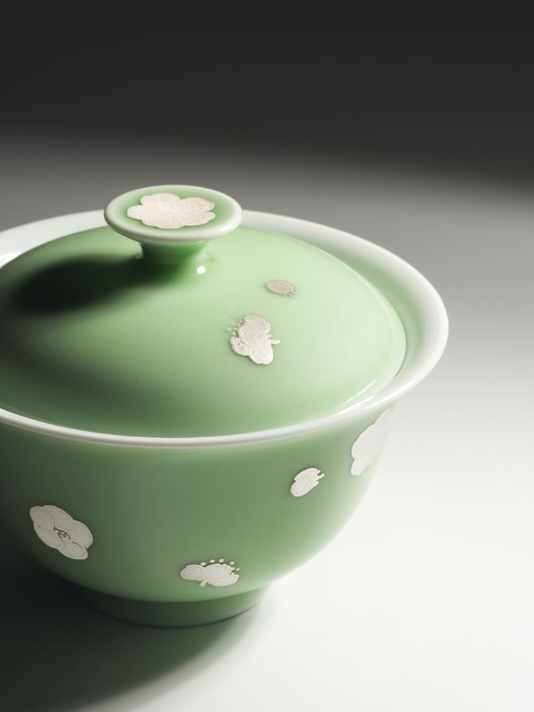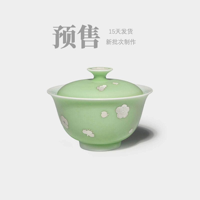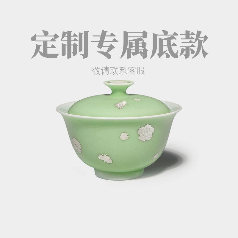 • All-handmade high temperature raw ore blue glaze hand-painted blue sterling silver falling flower Ercai cover bowl 120ml