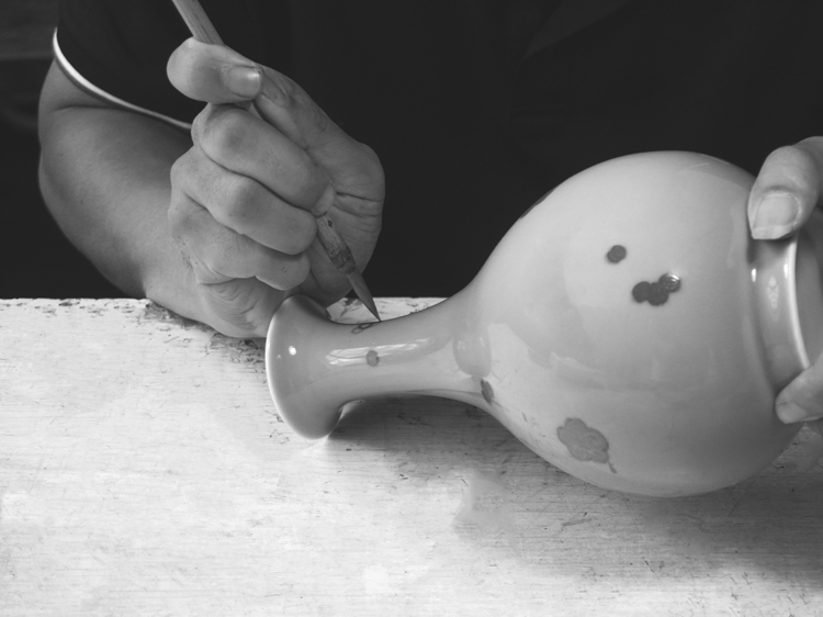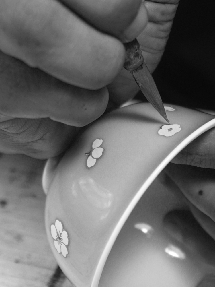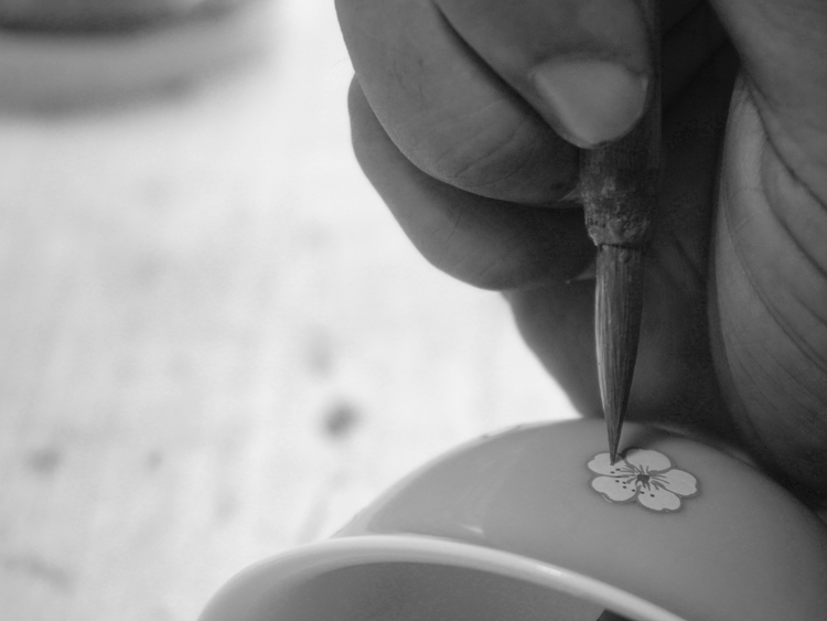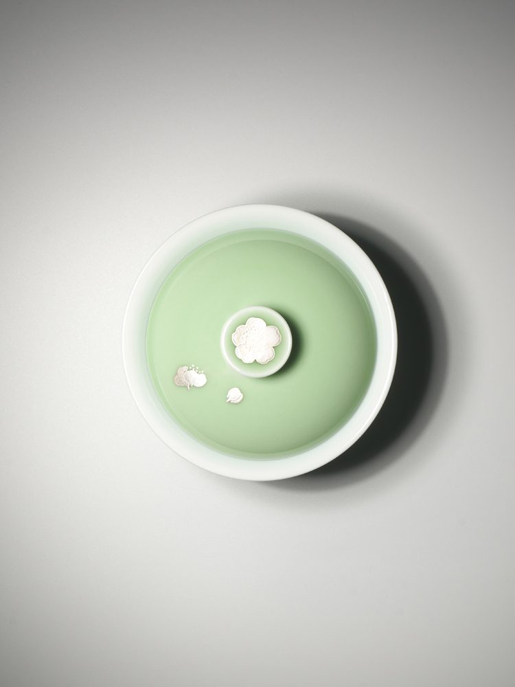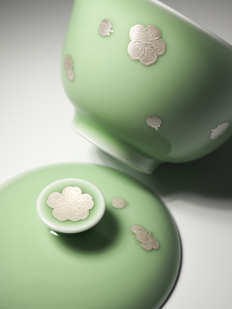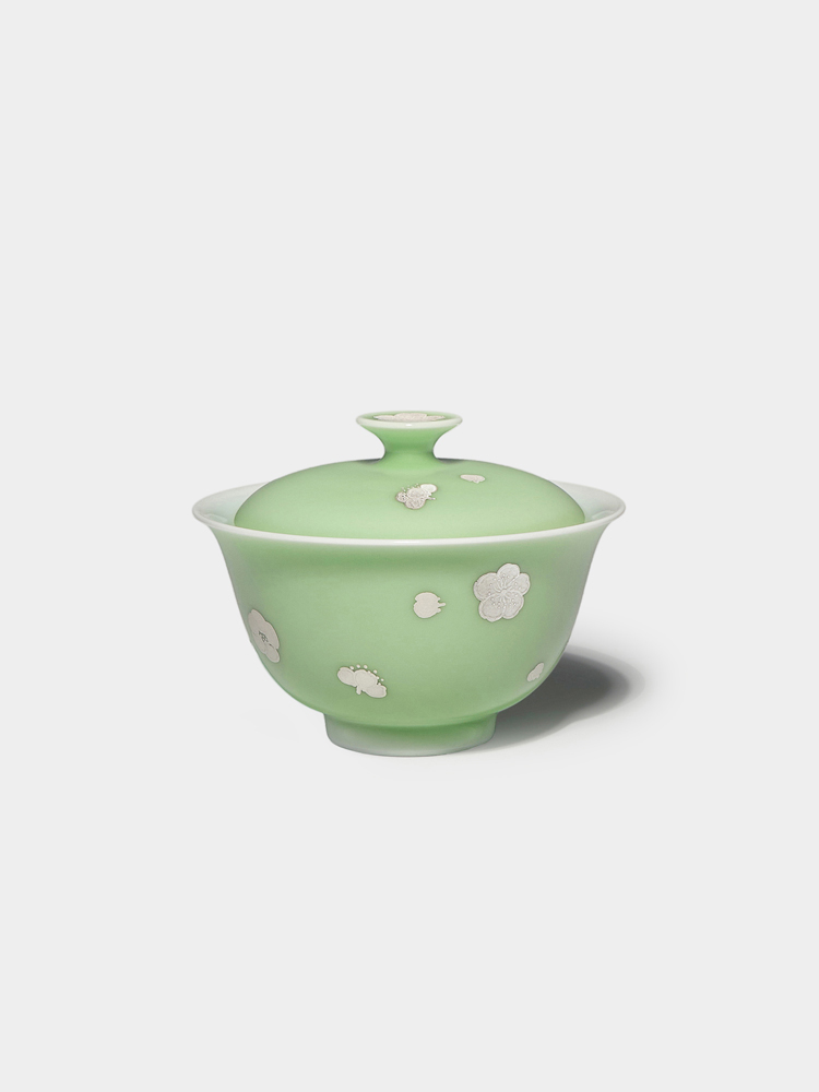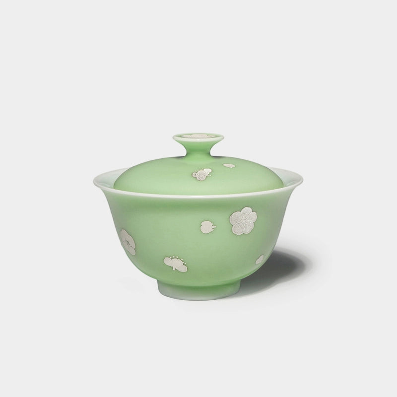 • All-handmade high temperature raw ore blue glaze hand-painted blue sterling silver falling flower Ercai cover bowl 120ml