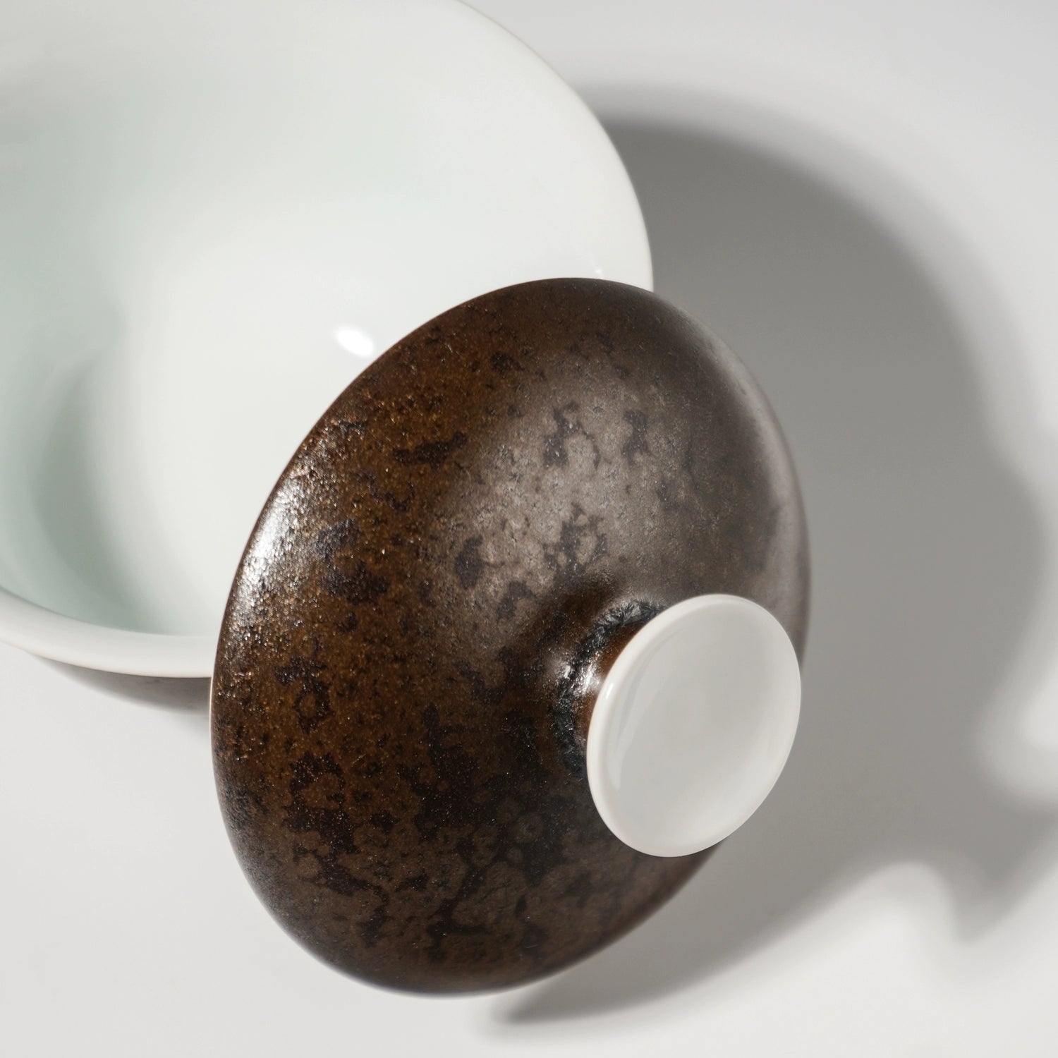 pure handmade high temperature raw ore glaze Chinese tea bowl, bronze small cover bowl 90ml