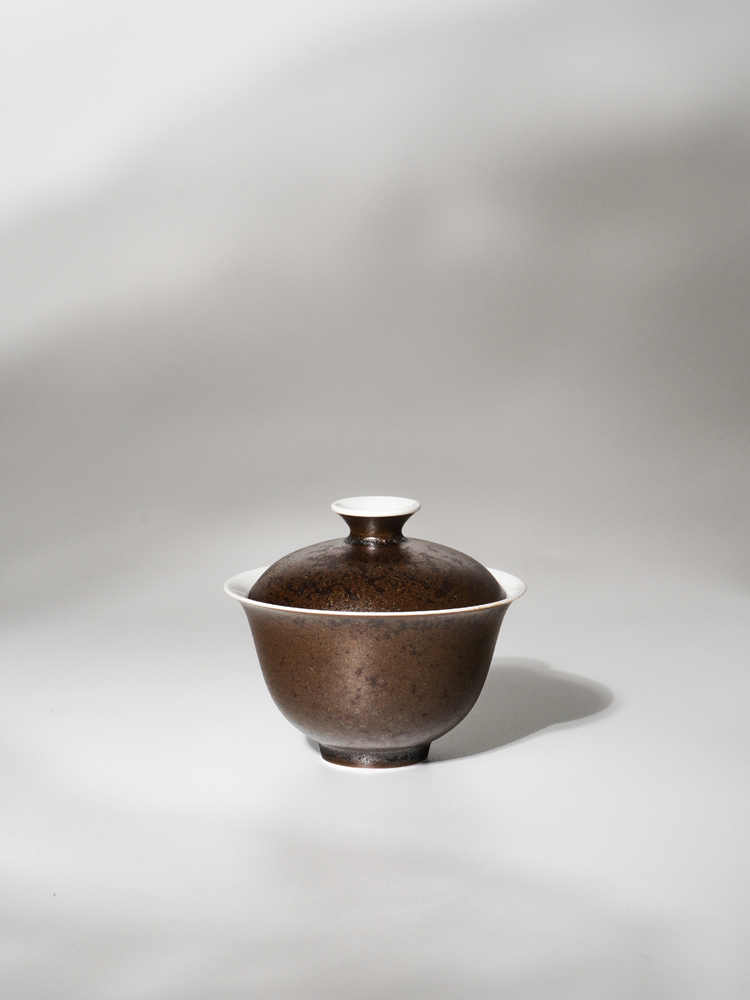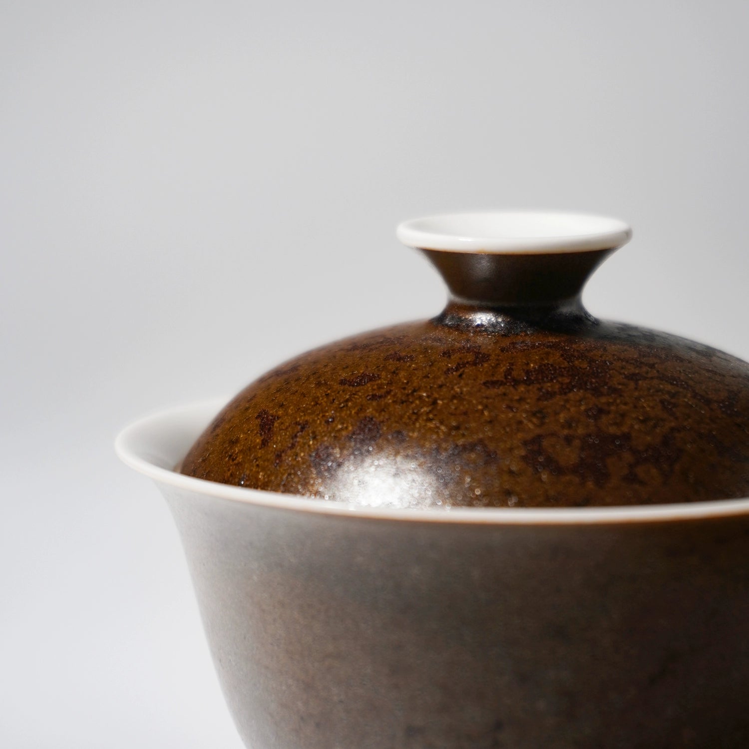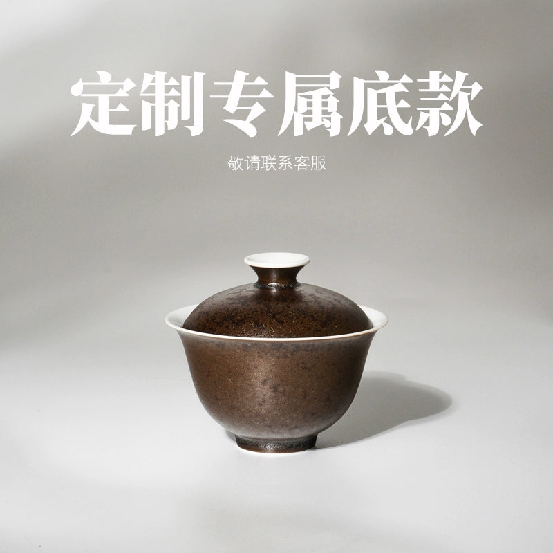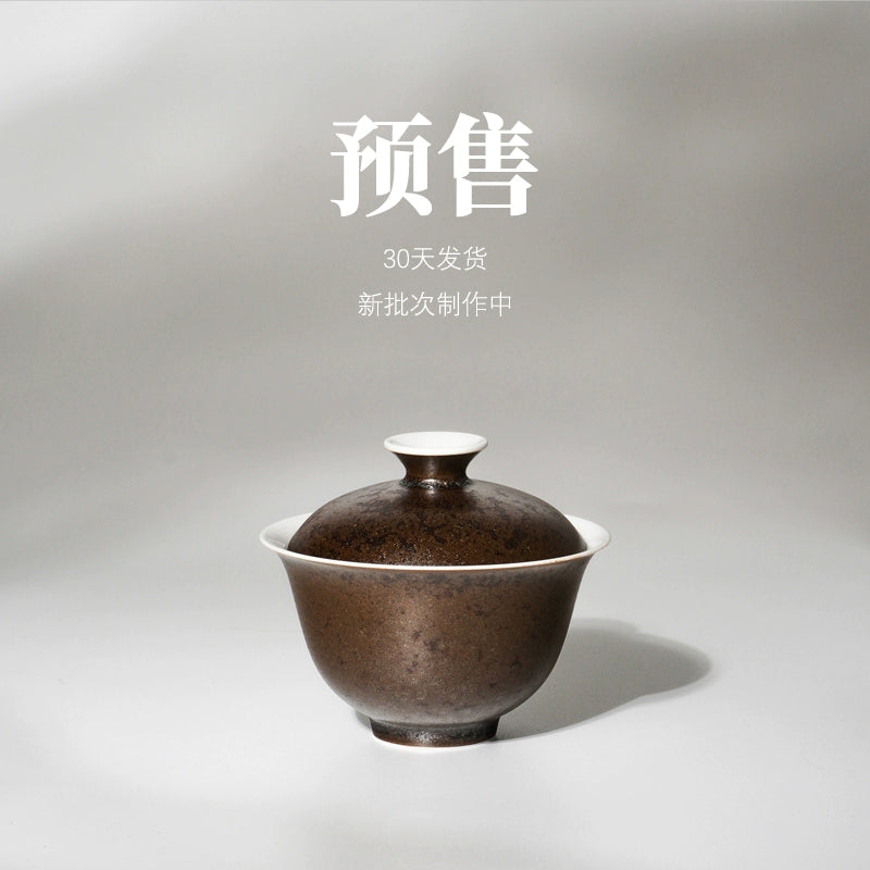 • pure handmade high temperature raw ore glaze Chinese tea bowl, bronze small cover bowl 90ml