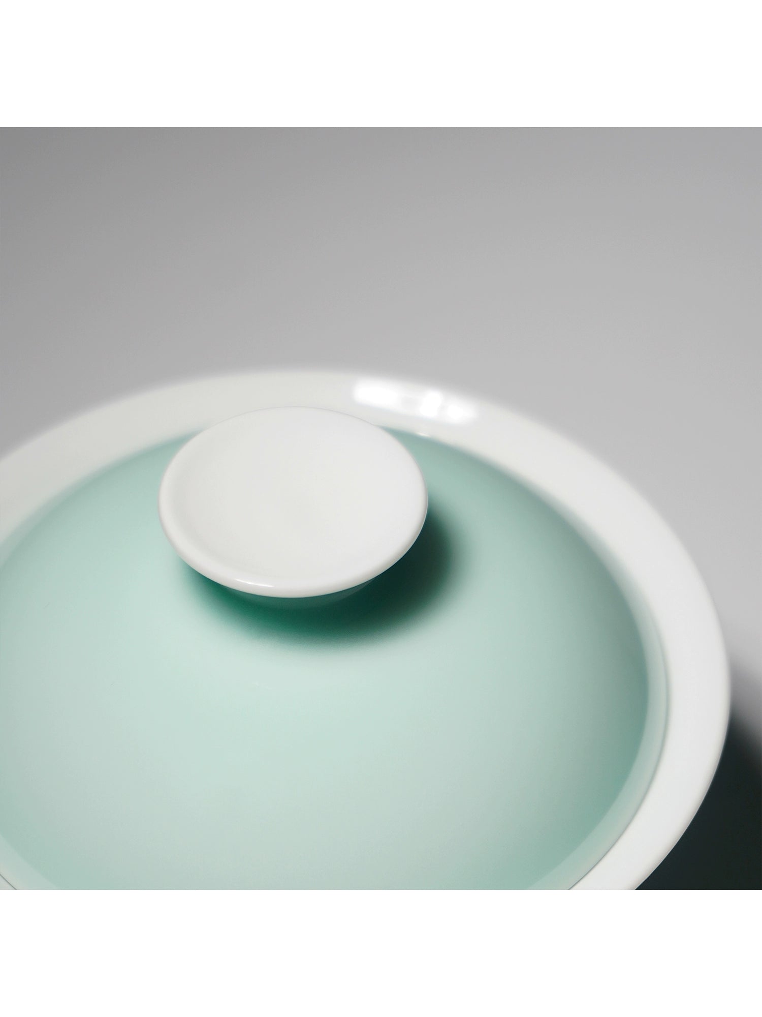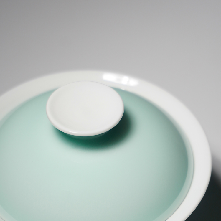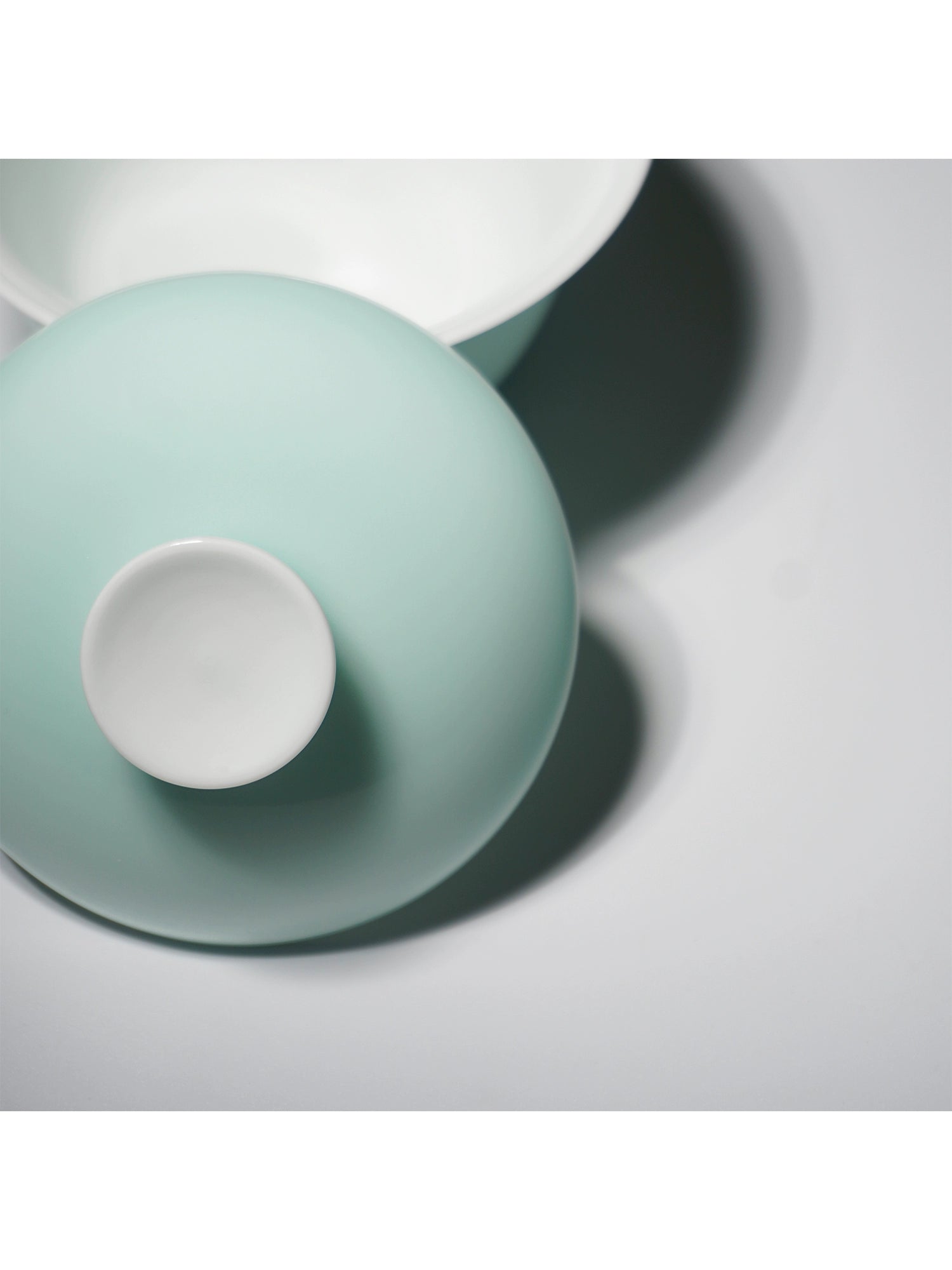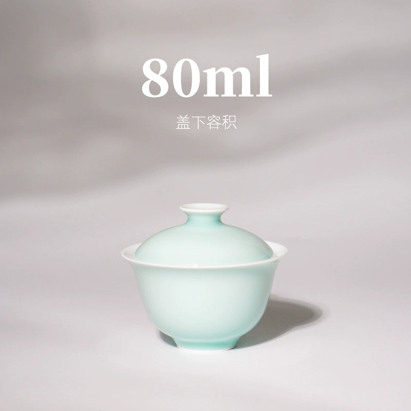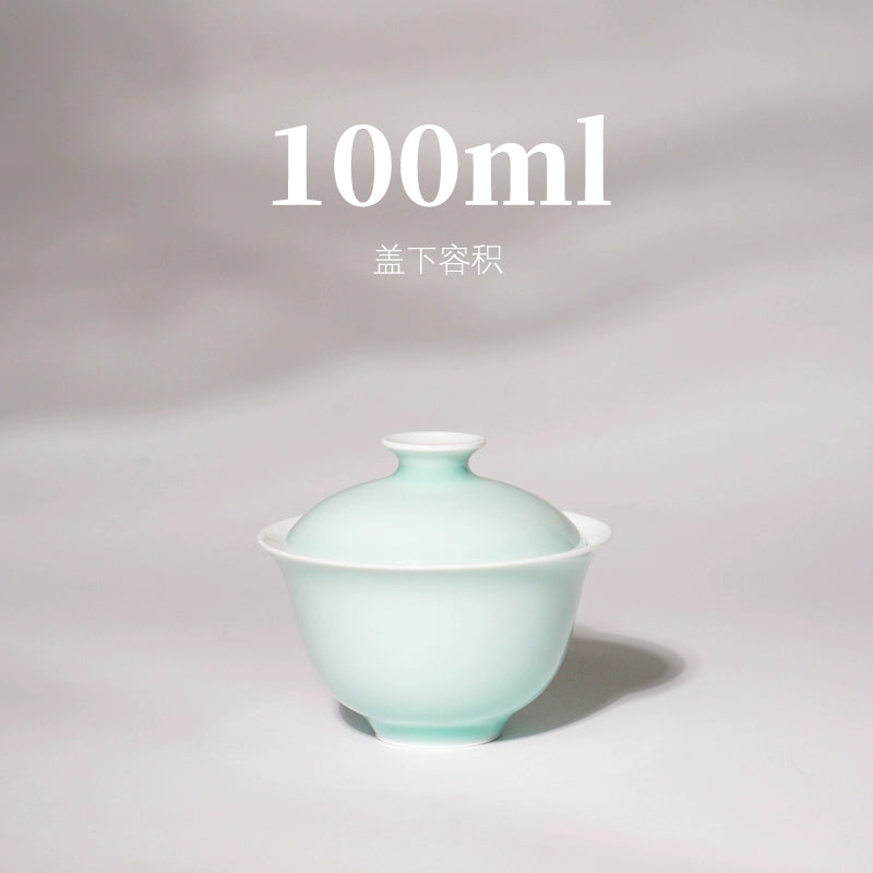 pure handmade high temperature raw ore glaze Chinese tea bowl, light green small cover bowl 100ml