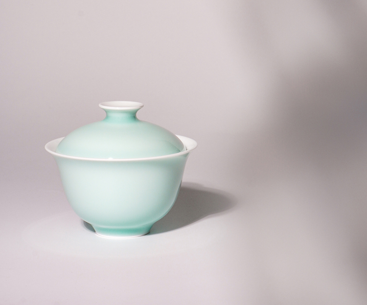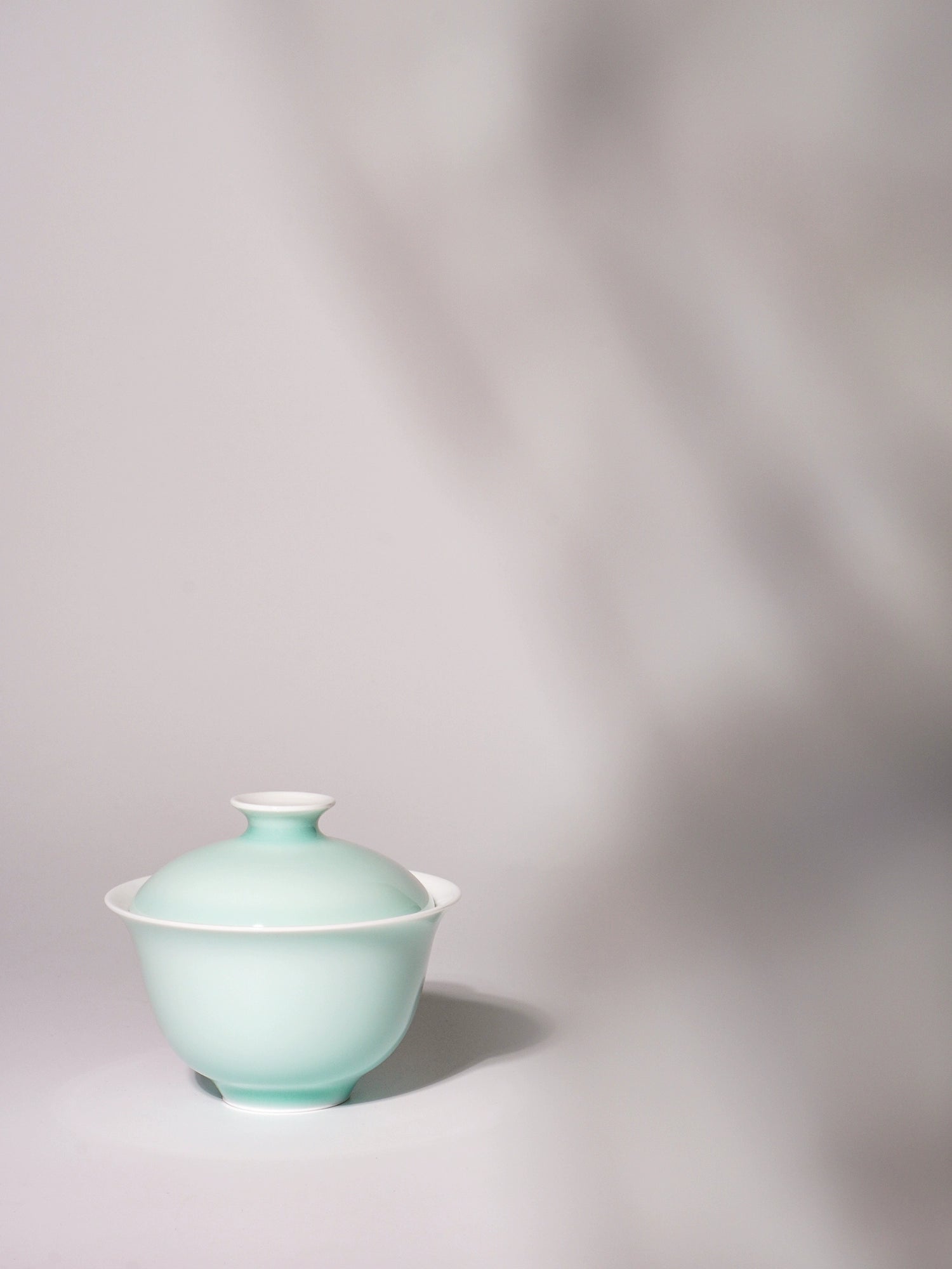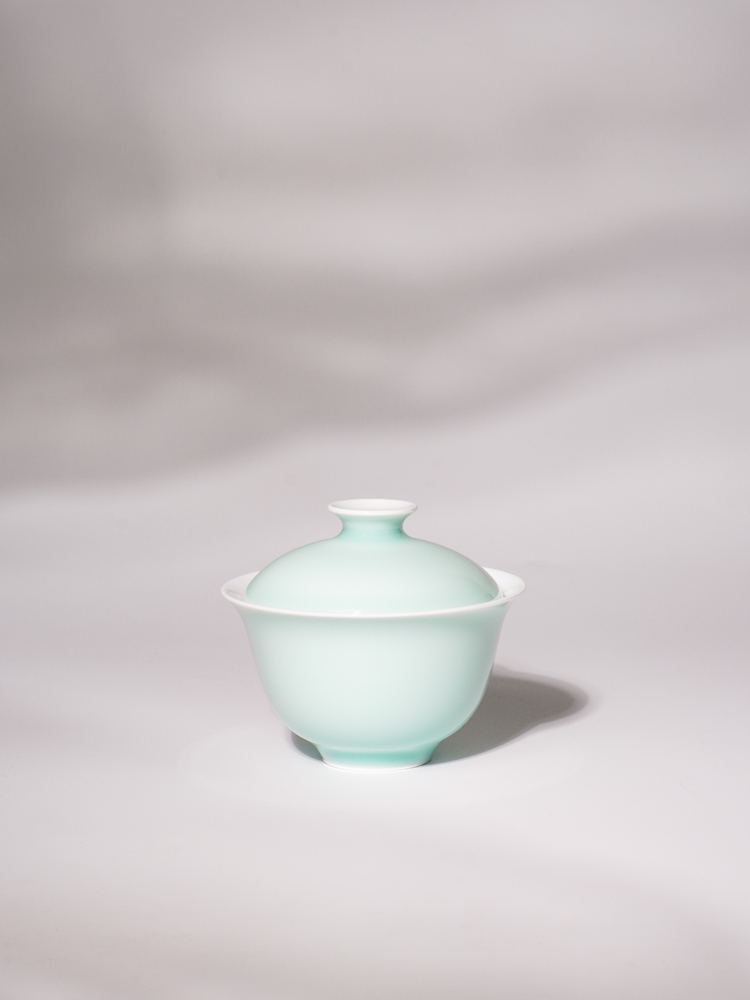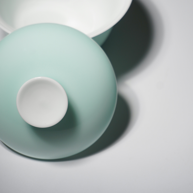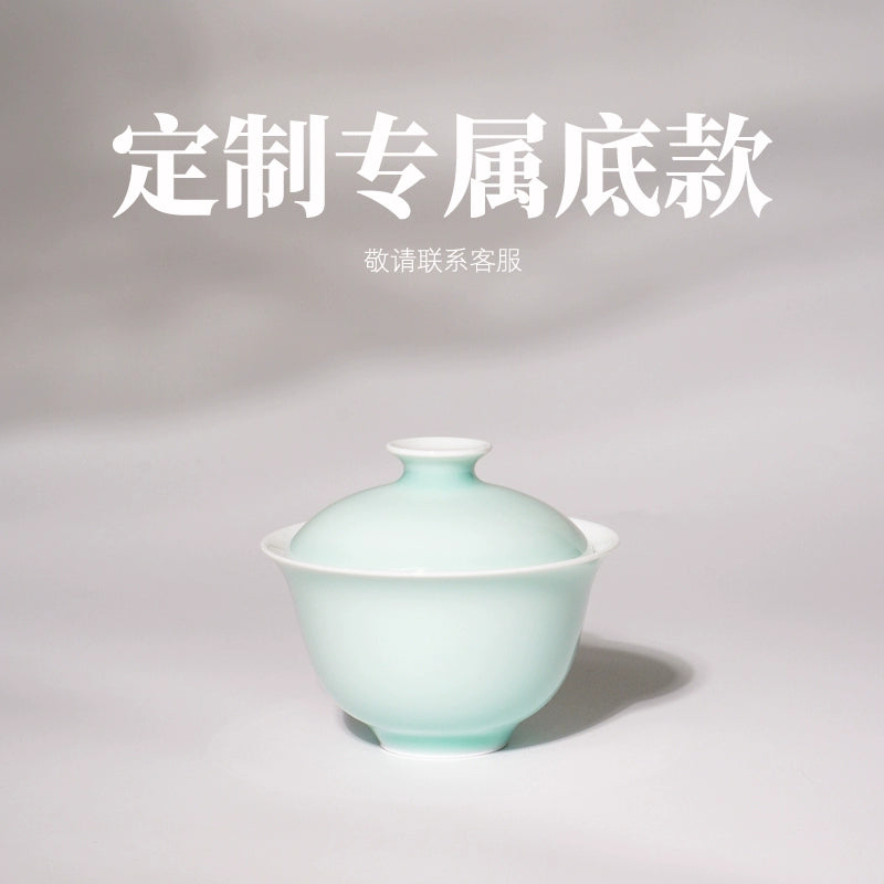 pure handmade high temperature raw ore glaze Chinese tea bowl, light green small cover bowl 100ml