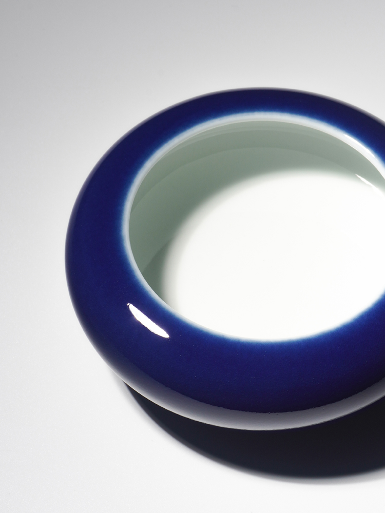 Chai kiln fired high temperature raw ore glaze 2022 new fired Chinese study ornament Ji blue small copper gong washed with water