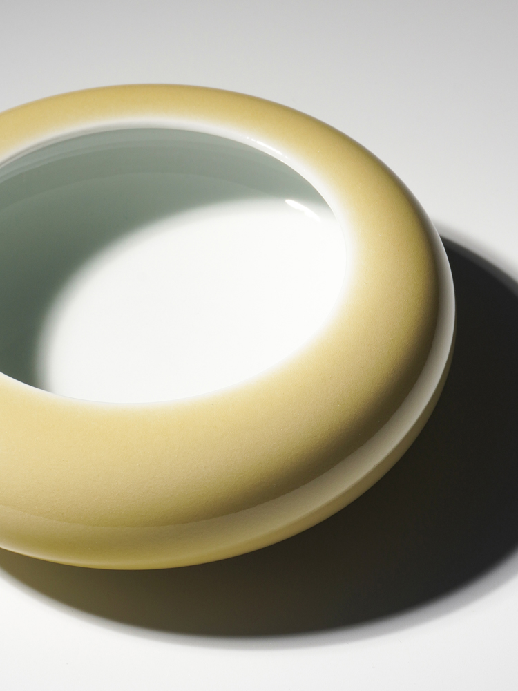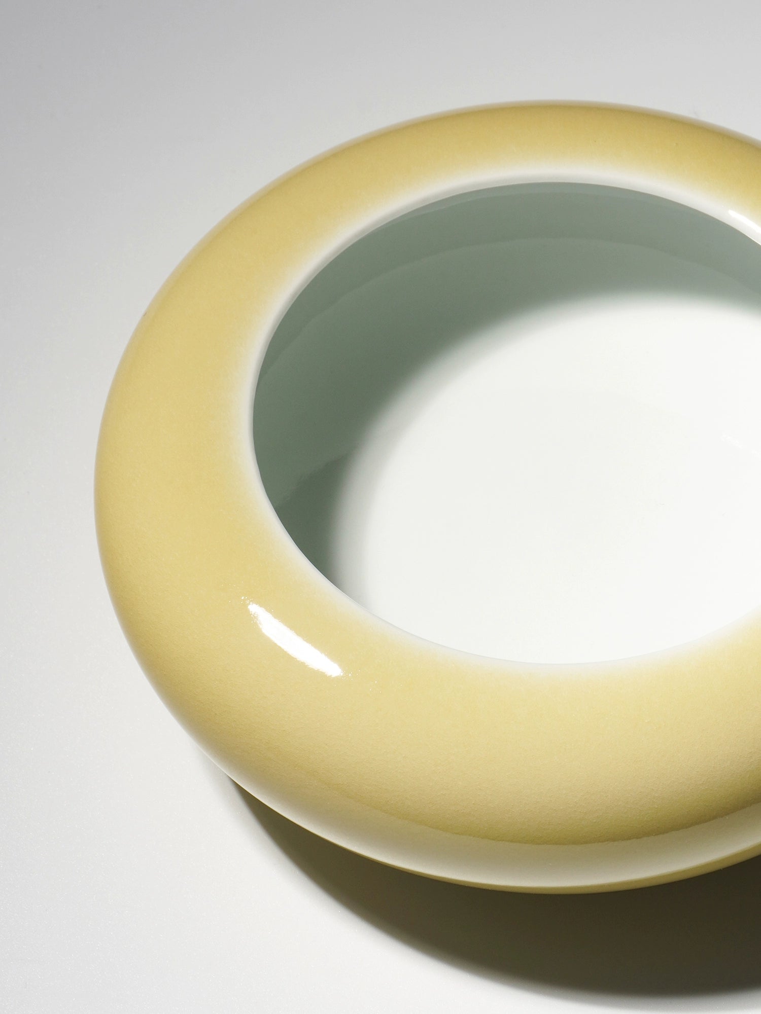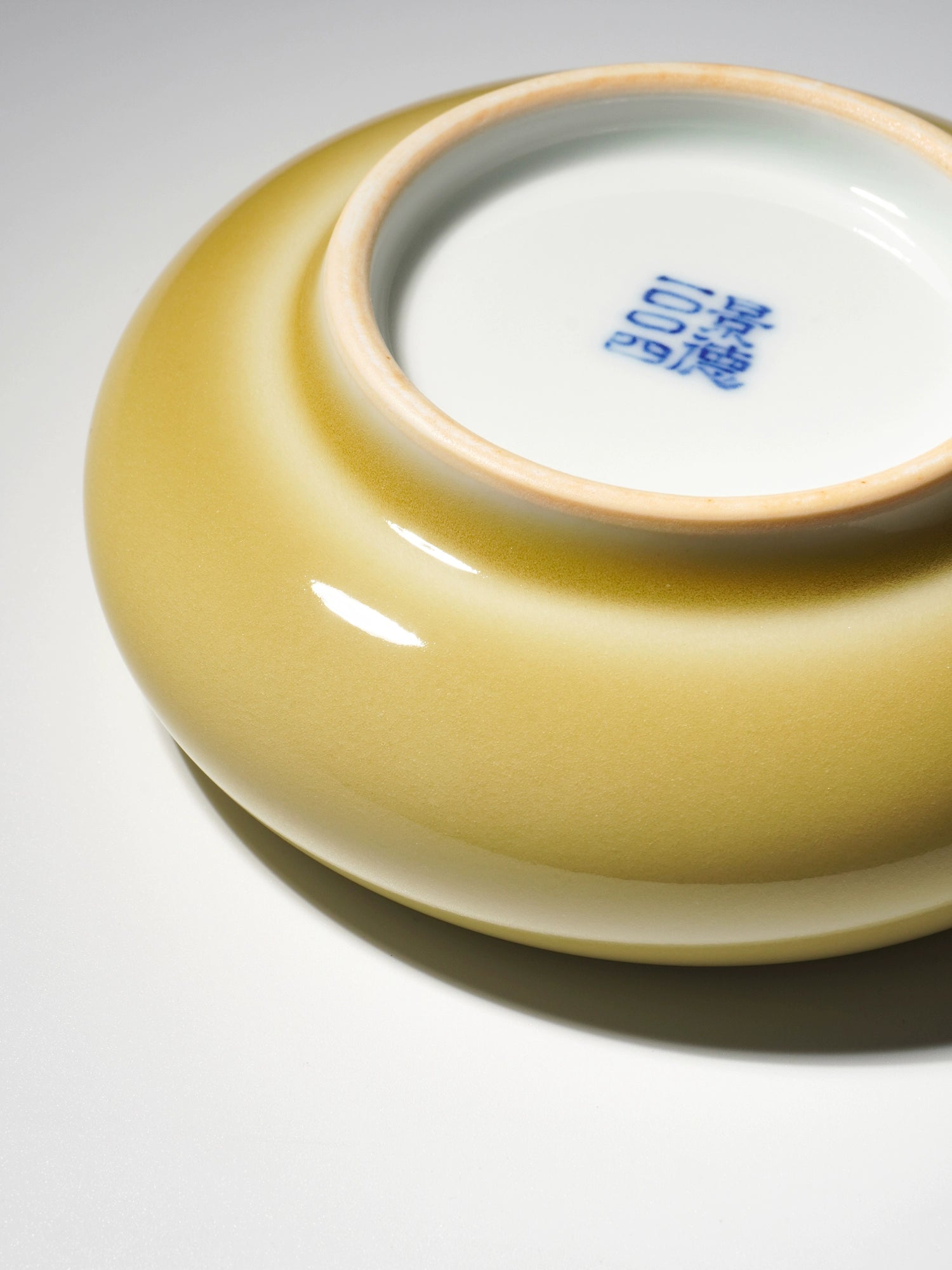 Chai kiln fired high temperature raw ore glaze 2022 new fired Chinese study ornament yellow glaze small copper gong washed with water