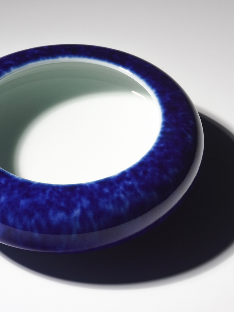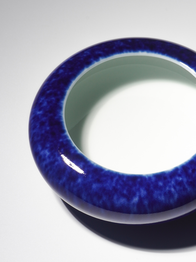 • Chai kiln fired high temperature raw ore glaze 2022 new fired Chinese-style study ornament sprinkled with blue small gong washed with water