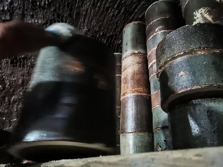 Chai kiln fired high temperature raw ore glaze 2022 new fired Chinese-style study ornament sprinkled with blue small gong washed with water