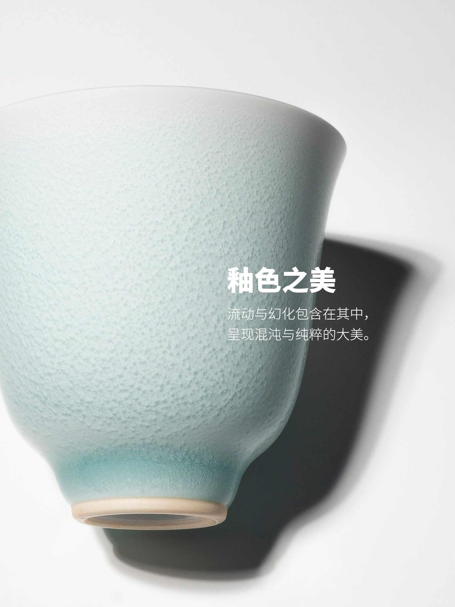 • Chai kiln fired high temperature raw ore lime alkali glaze handmade teacup master cup Cuiqing Flower God cup 70ml