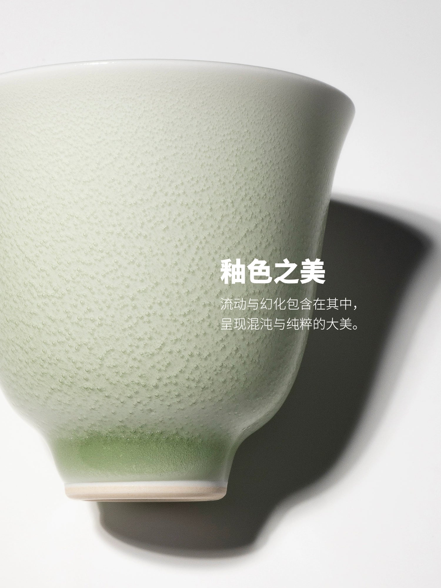 • Chai kiln fired high temperature raw ore lime alkali glaze handmade teacup master cup lake water green flower god cup 70ml