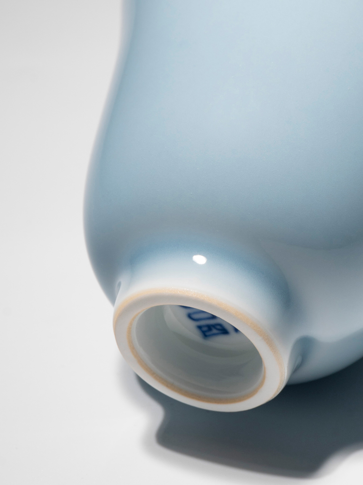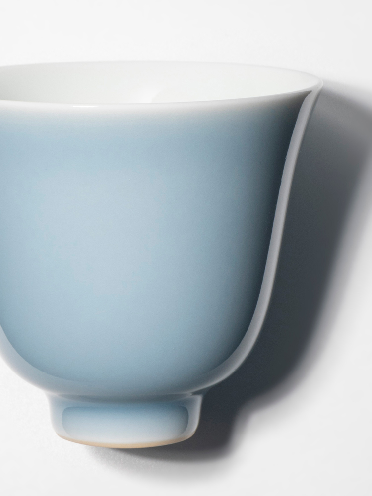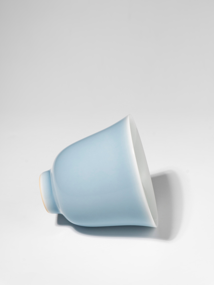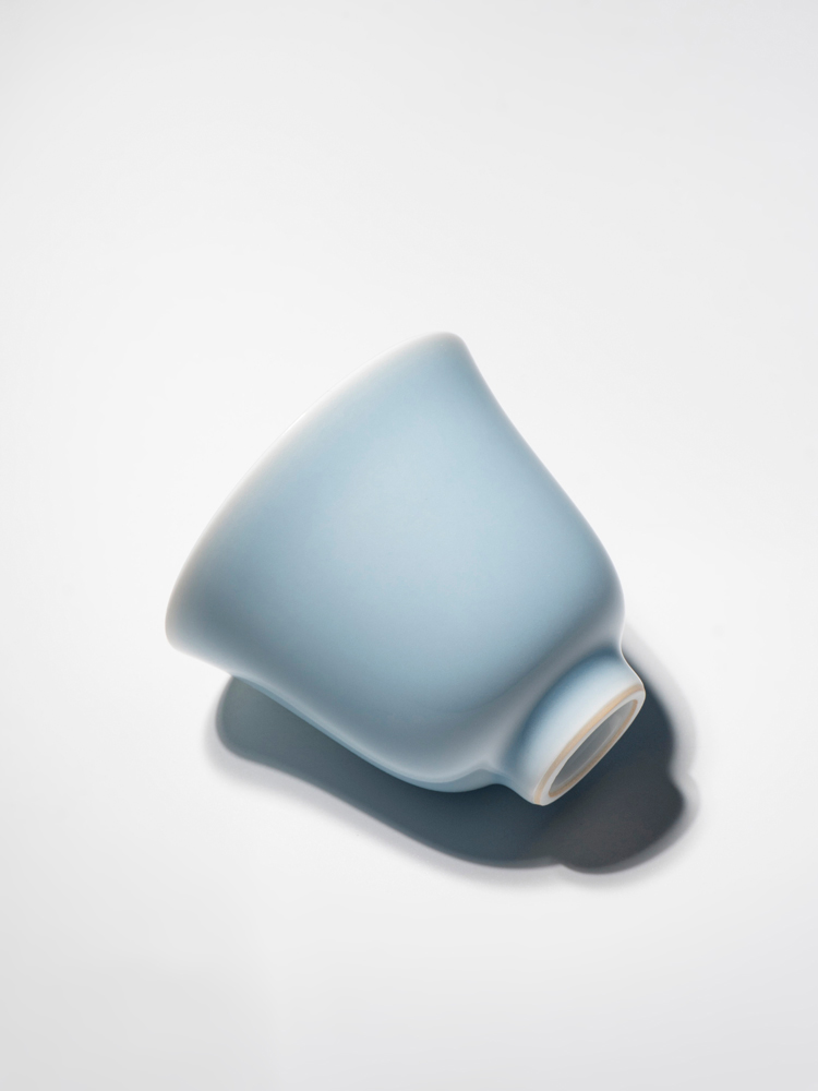 • Chai kiln fired high temperature raw ore lime alkali glaze handmade teacup master cup moon white blue flower god cup 70ml