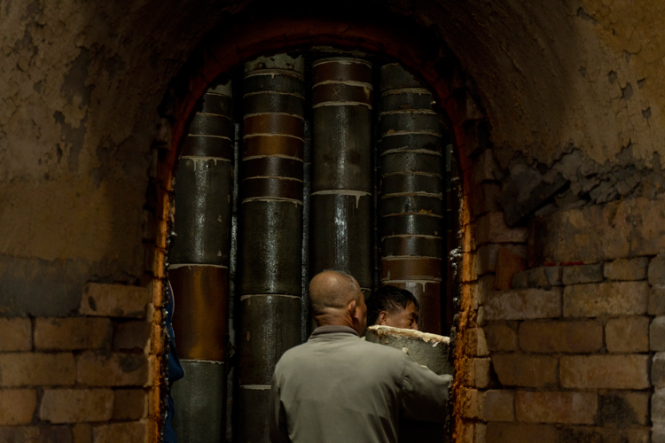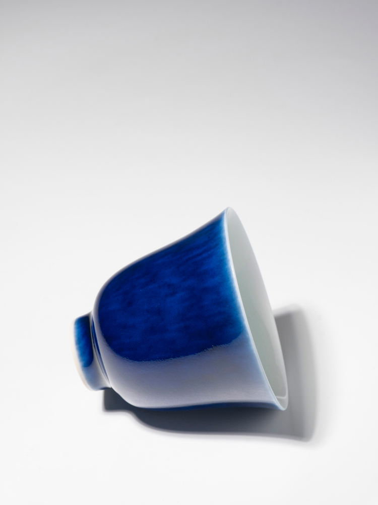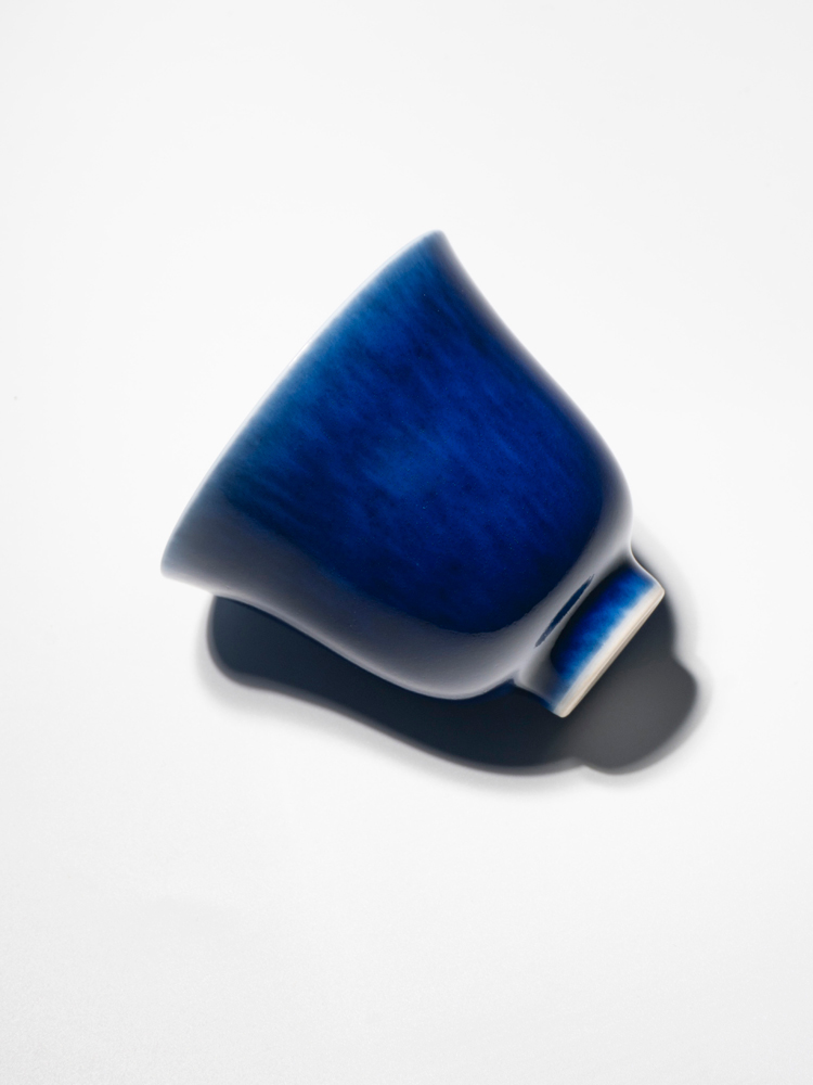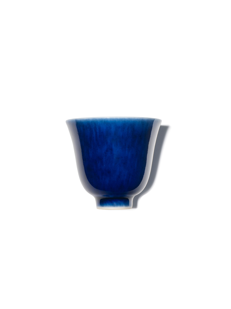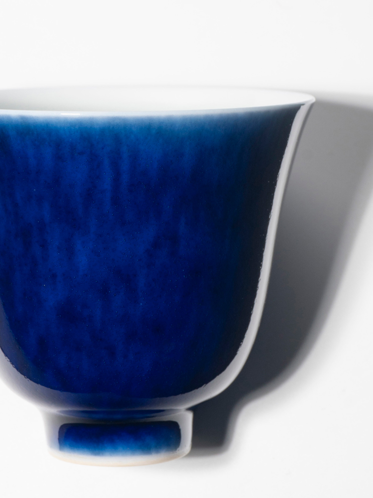 • Chai kiln fired high temperature raw ore lime alkali glaze handmade teacup master cup sprinkled blue flower god cup 70ml