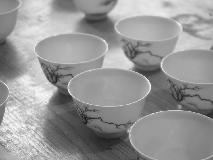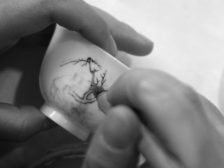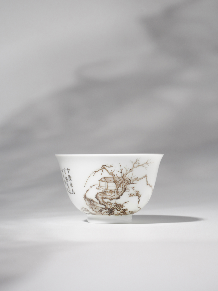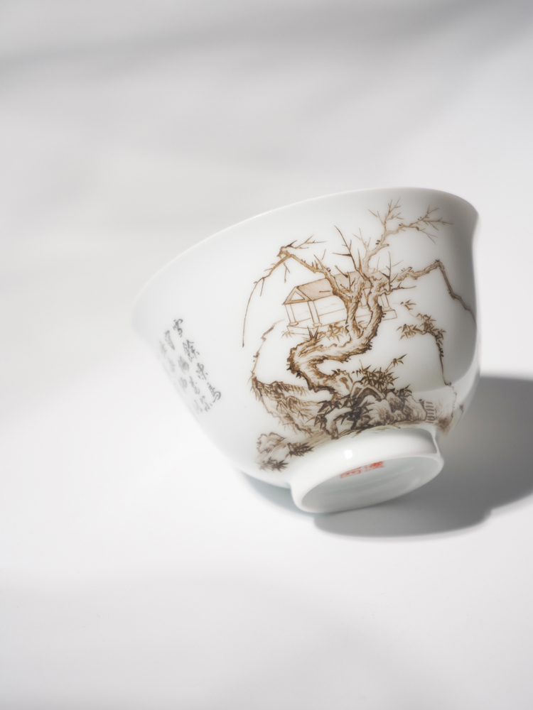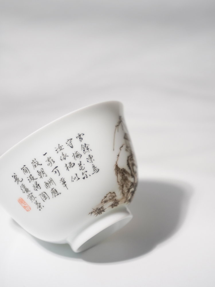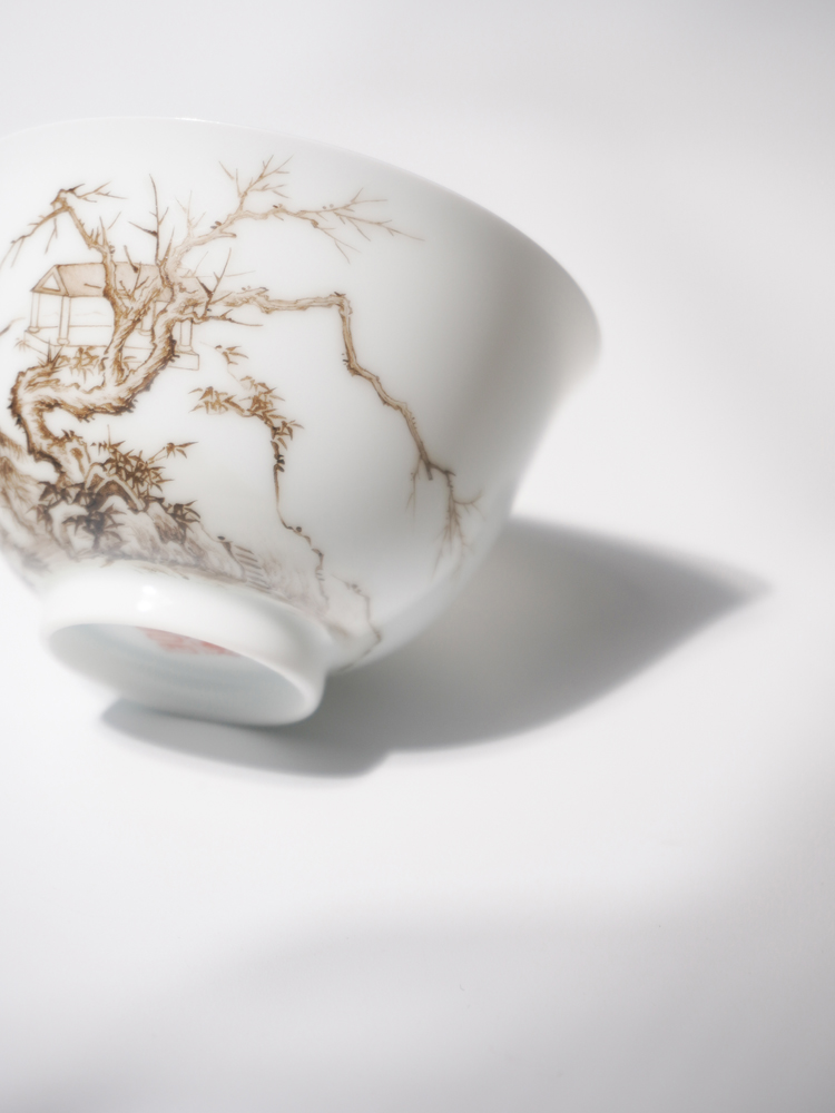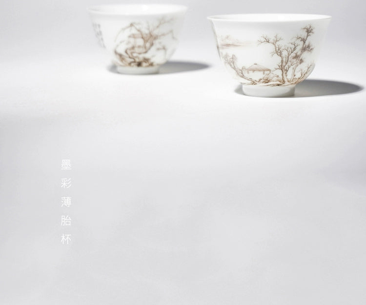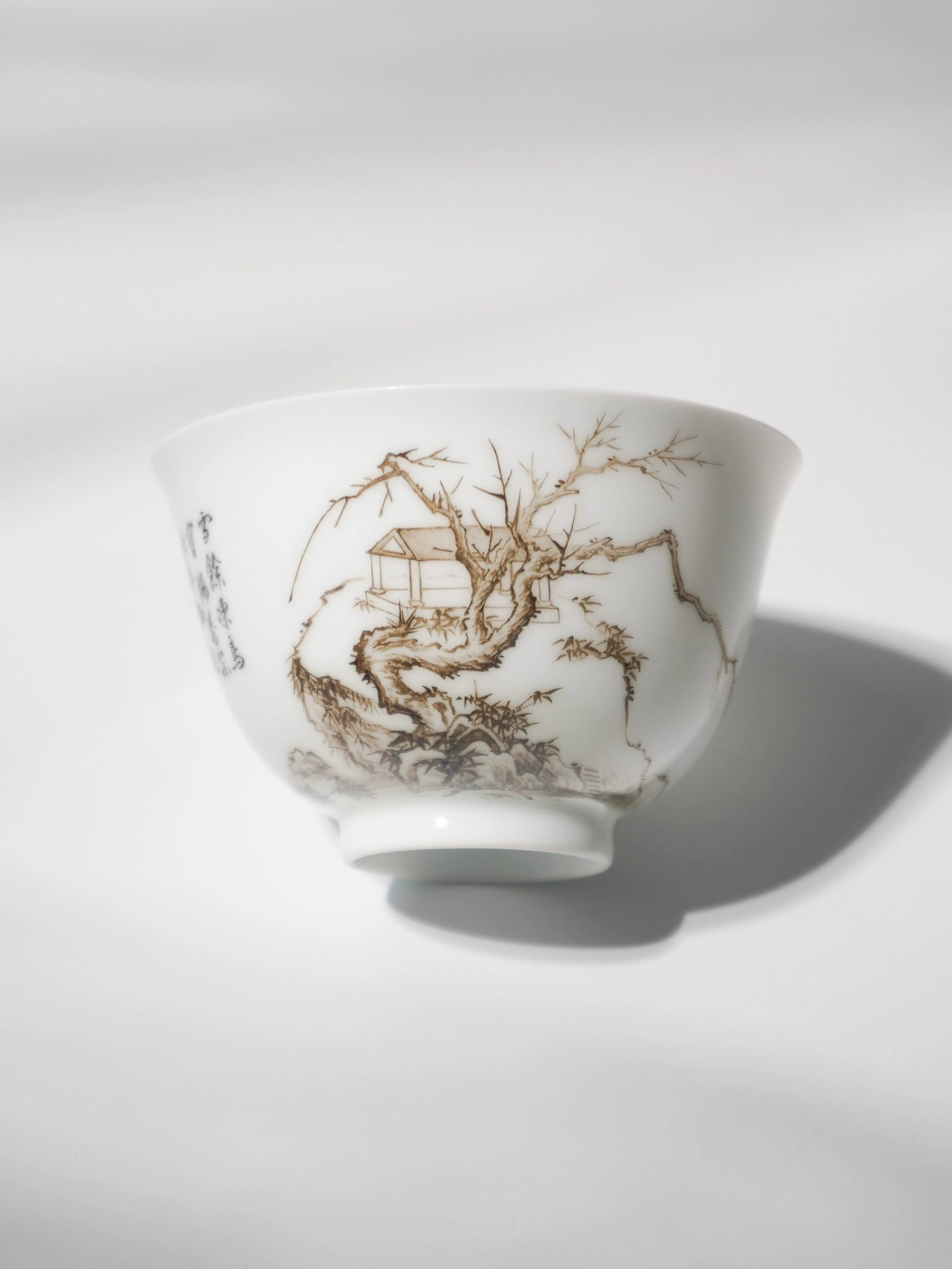 • Chinese retro teacup painted thin tire 27g90ml hand-painted ink-colored landscape Hongren plum blossom bookstore