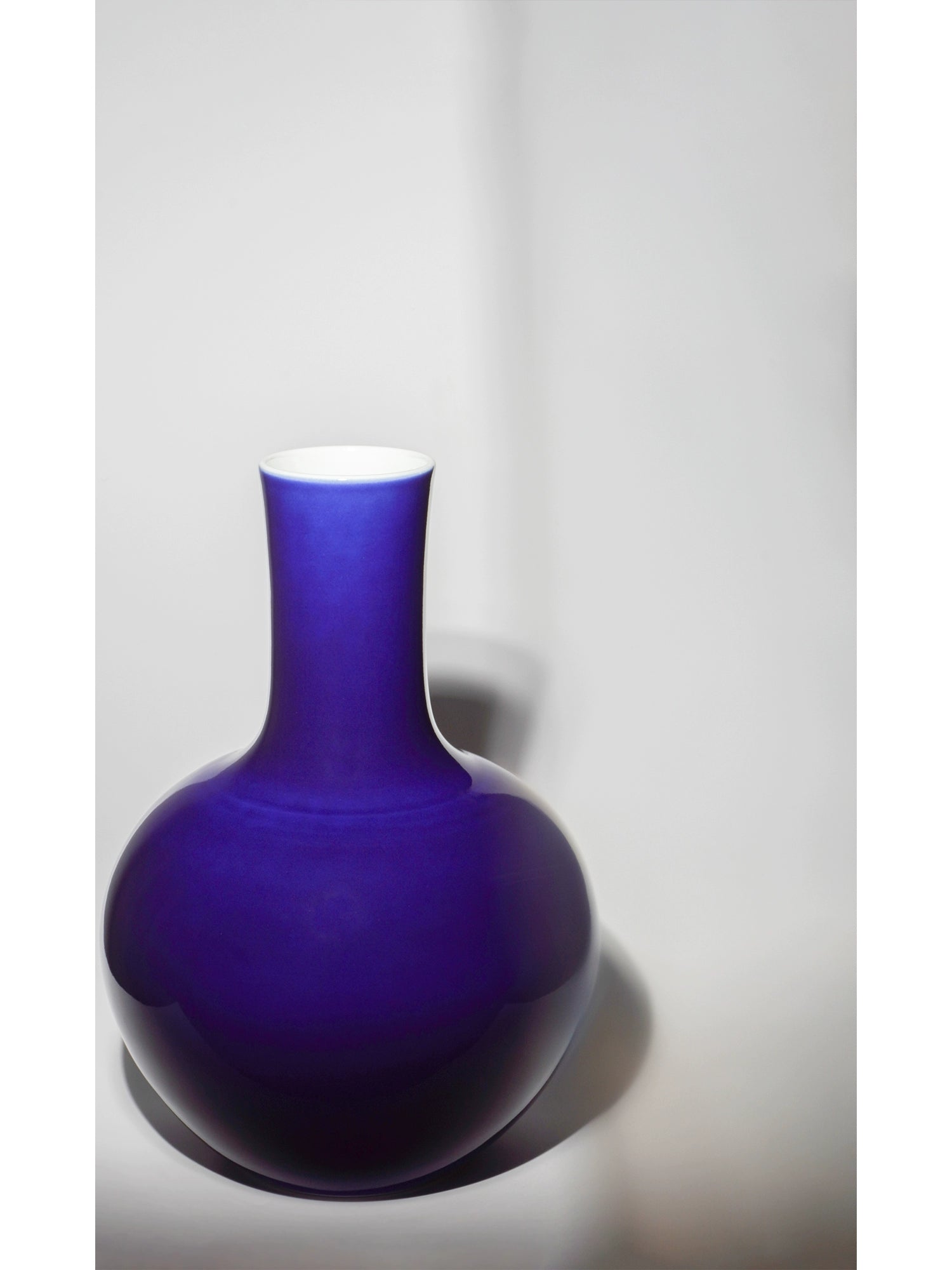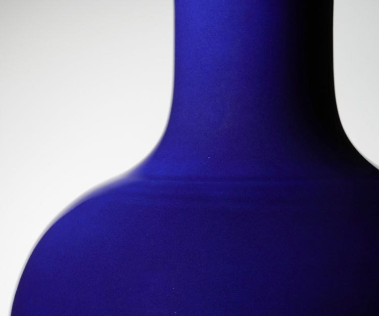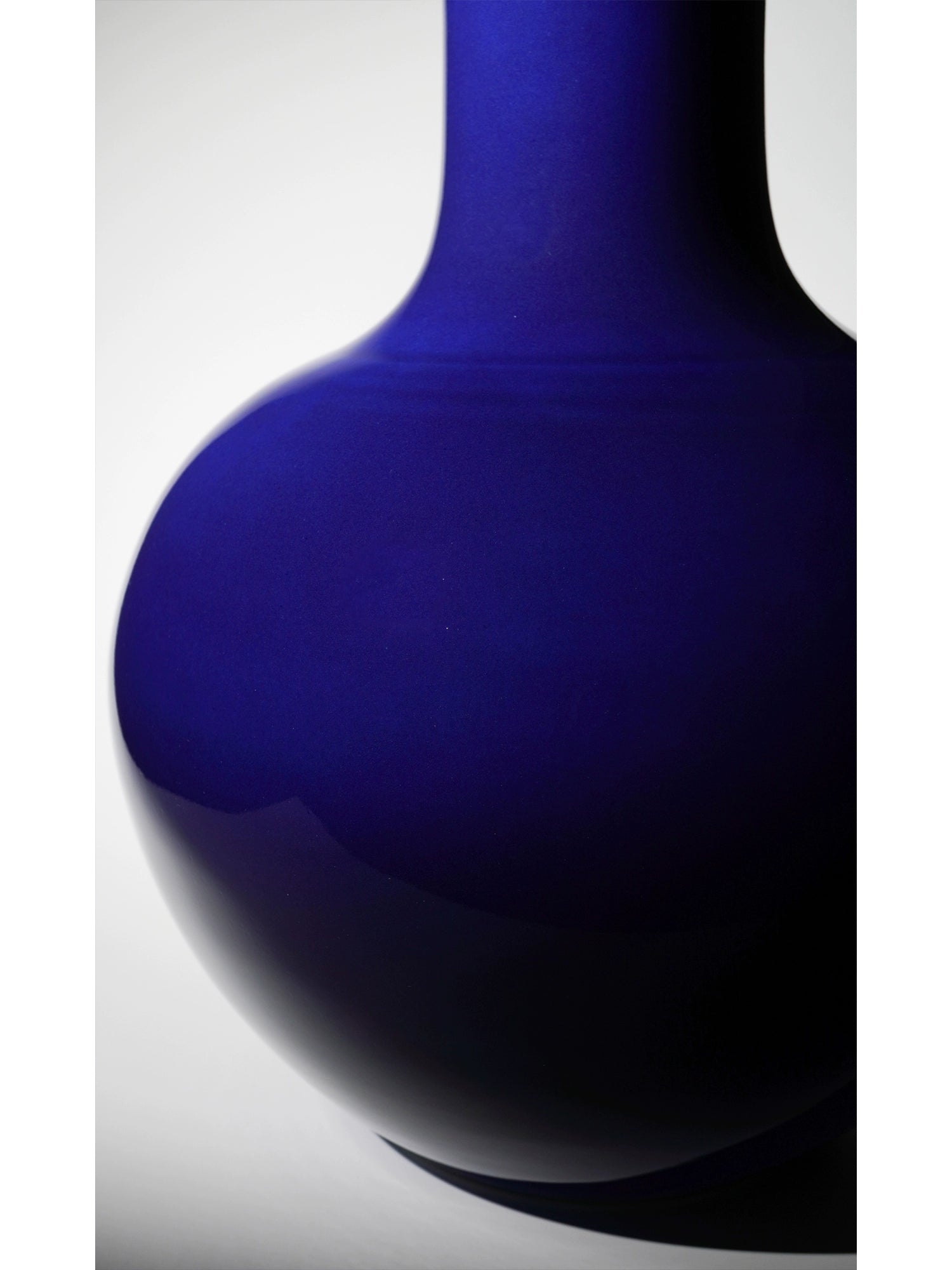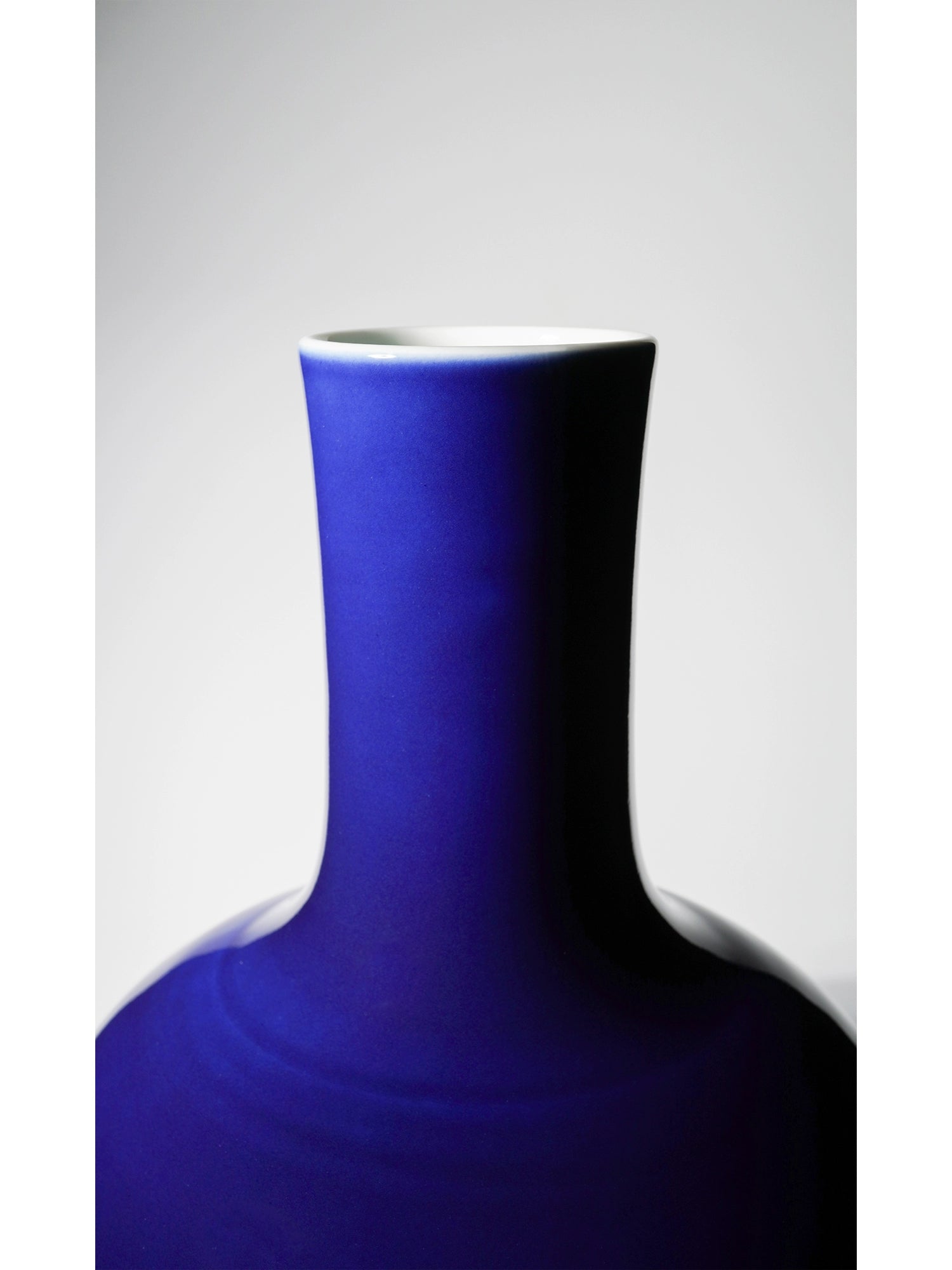 • handmade vase, large study case head bottle, Chinese flower arrangement raw ore glaze, sapphire blue celestial ball bottle 34cm
