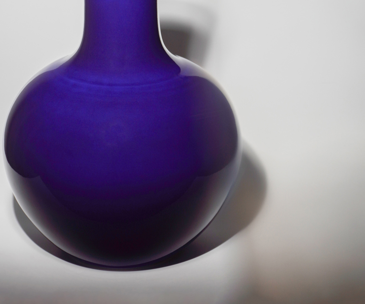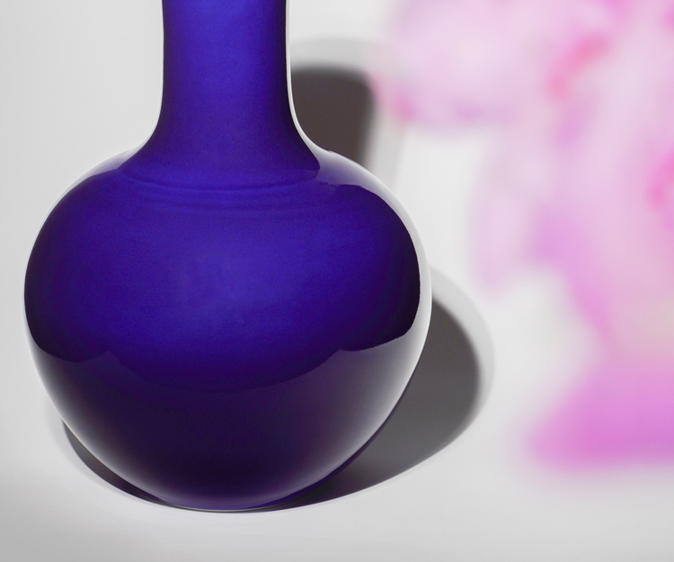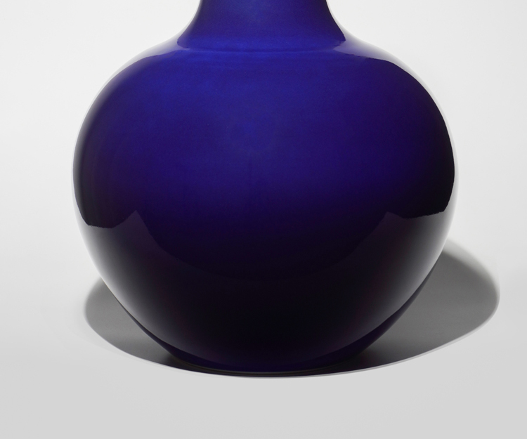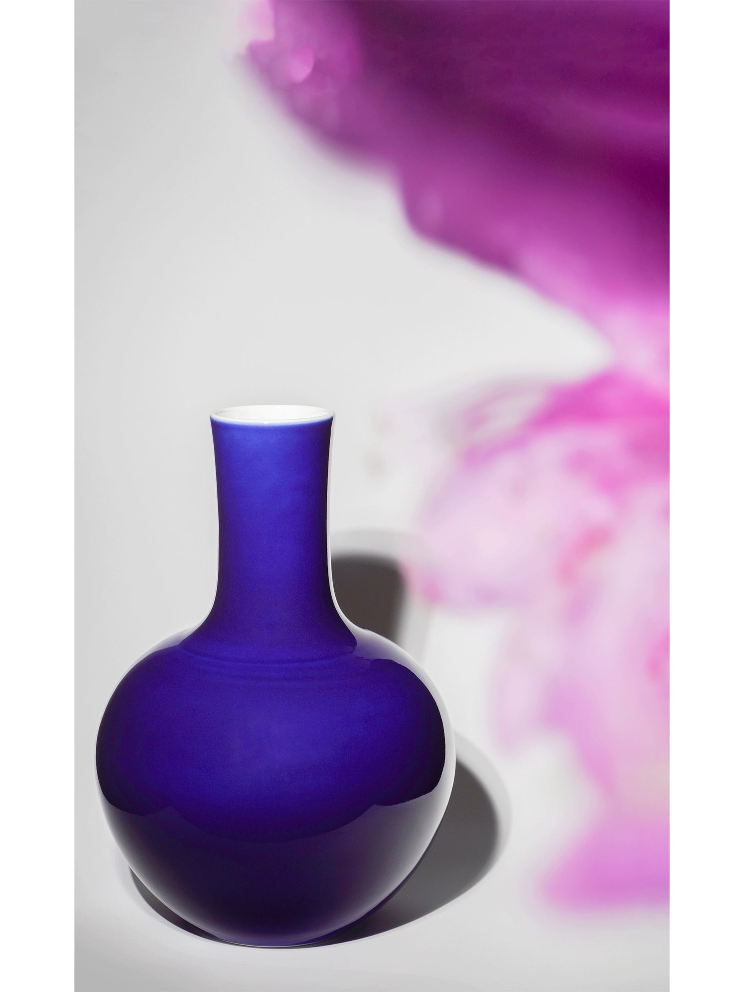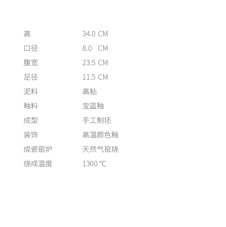 • handmade vase, large study case head bottle, Chinese flower arrangement raw ore glaze, sapphire blue celestial ball bottle 34cm