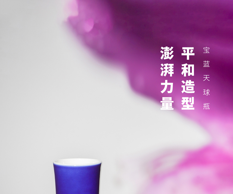 handmade vase, large study case head bottle, Chinese flower arrangement raw ore glaze, sapphire blue celestial ball bottle 34cm